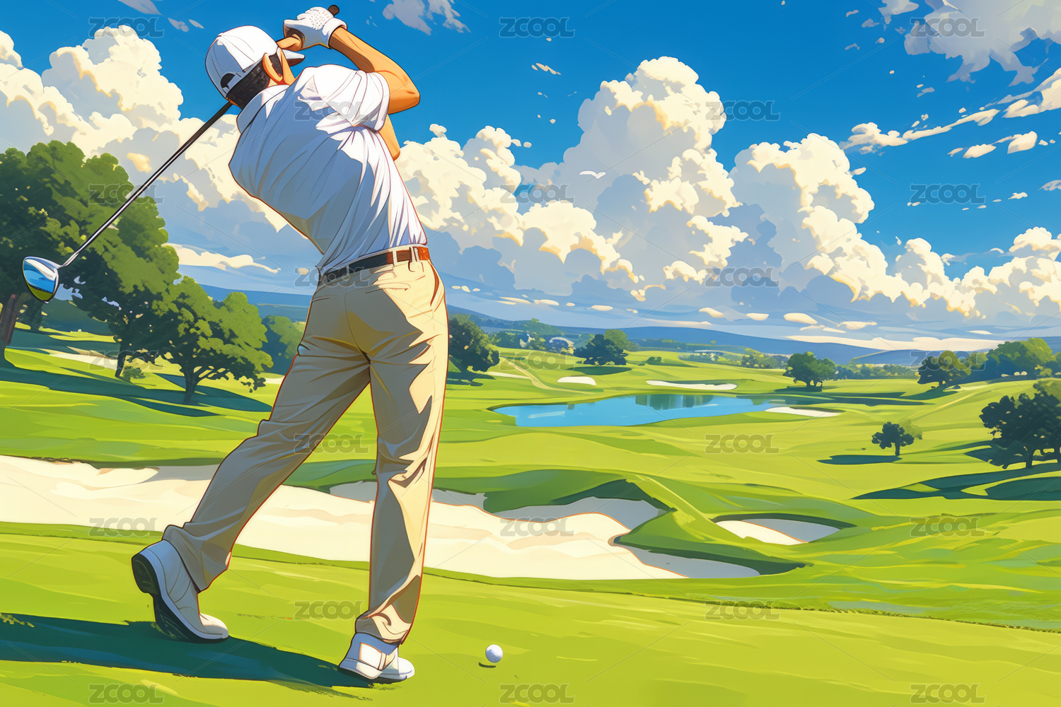 沙坑,数字艺术,挥杆,女子,高尔夫,阳光