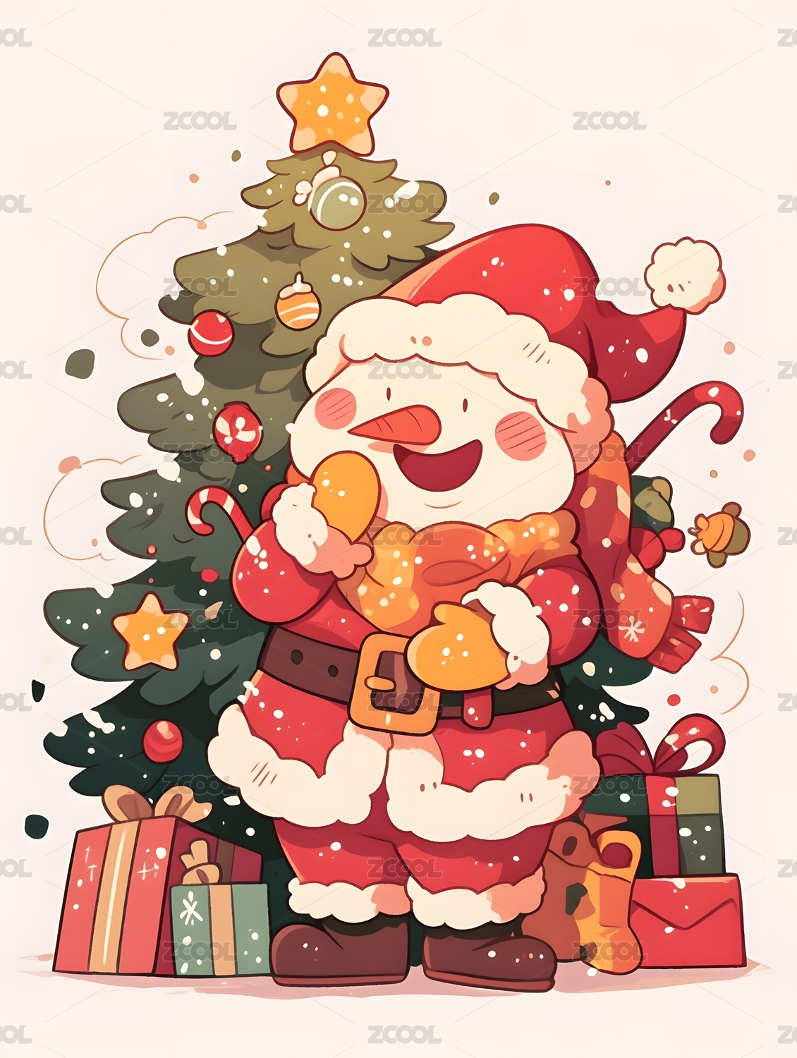 圣诞主题雪人松树T恤图案印花卡通壁纸