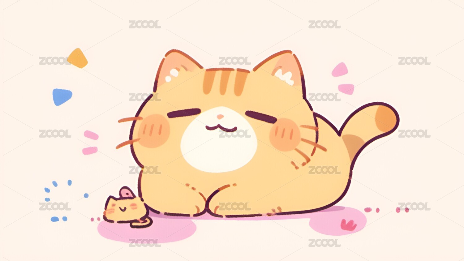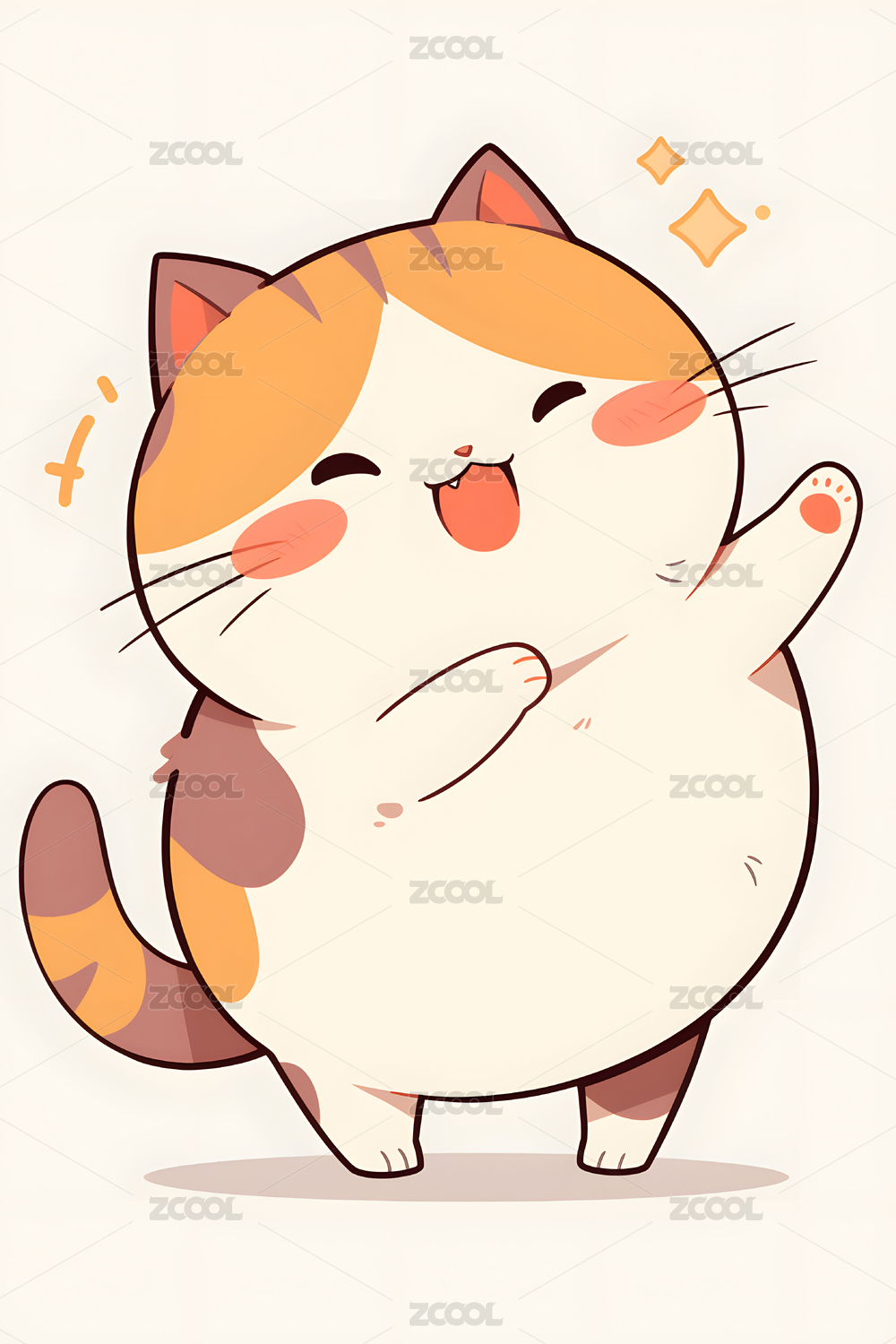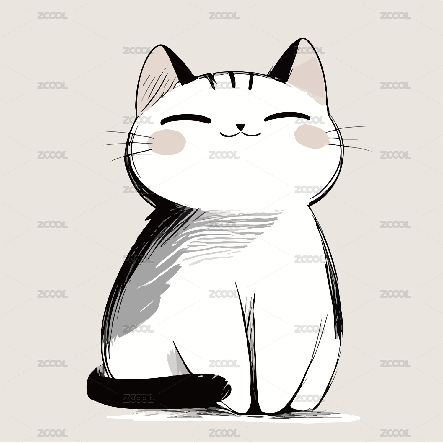 AIGCTA2024,呆萌,小猫,蠢萌,猫咪,可爱,卡通,简笔画,简单,极简