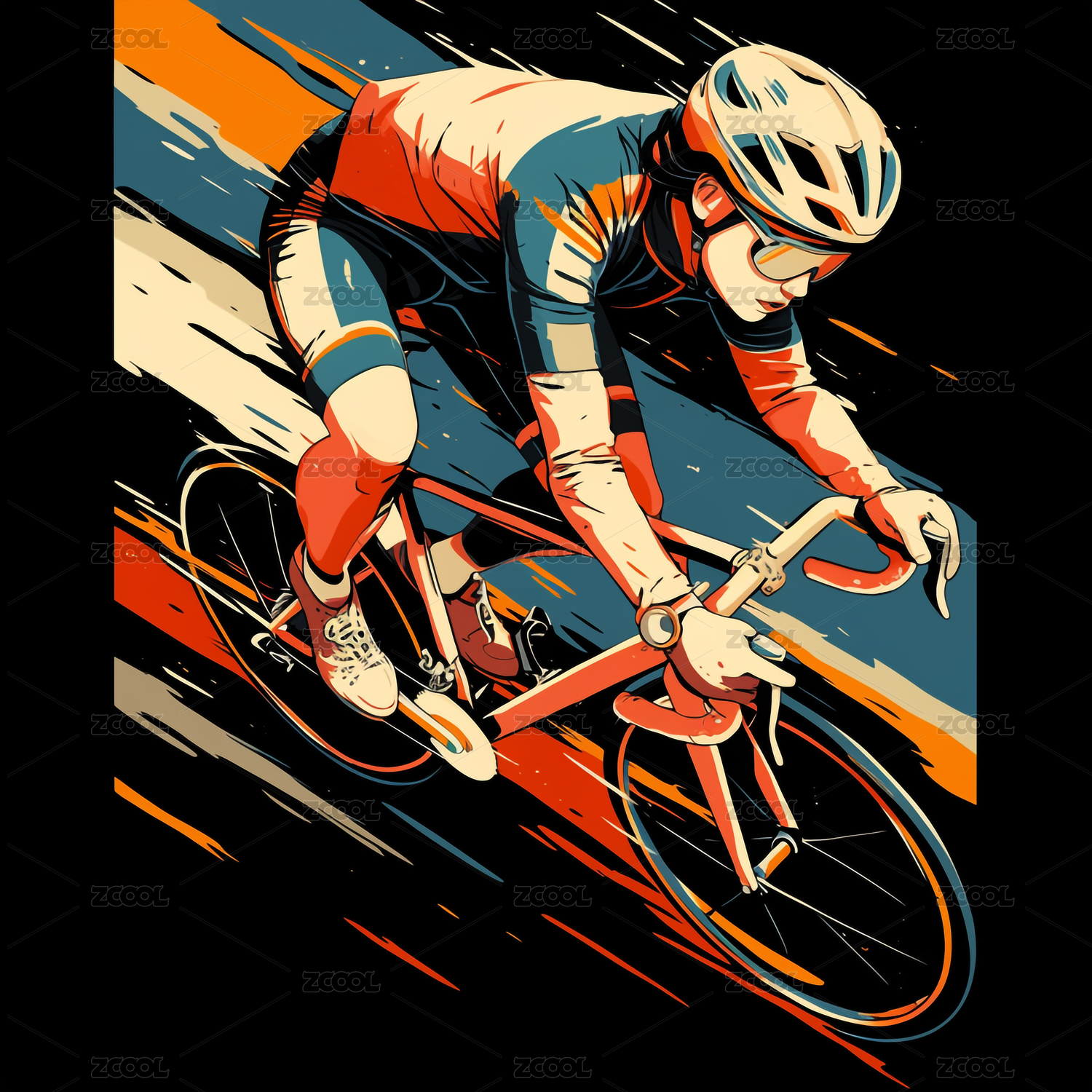 骑行,骑手,运动,活力,飞驰,动感,艺术,插画,激情,热血