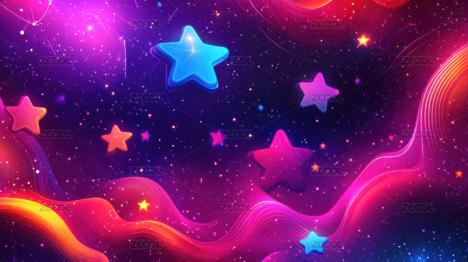 梦幻星空与彩色波浪