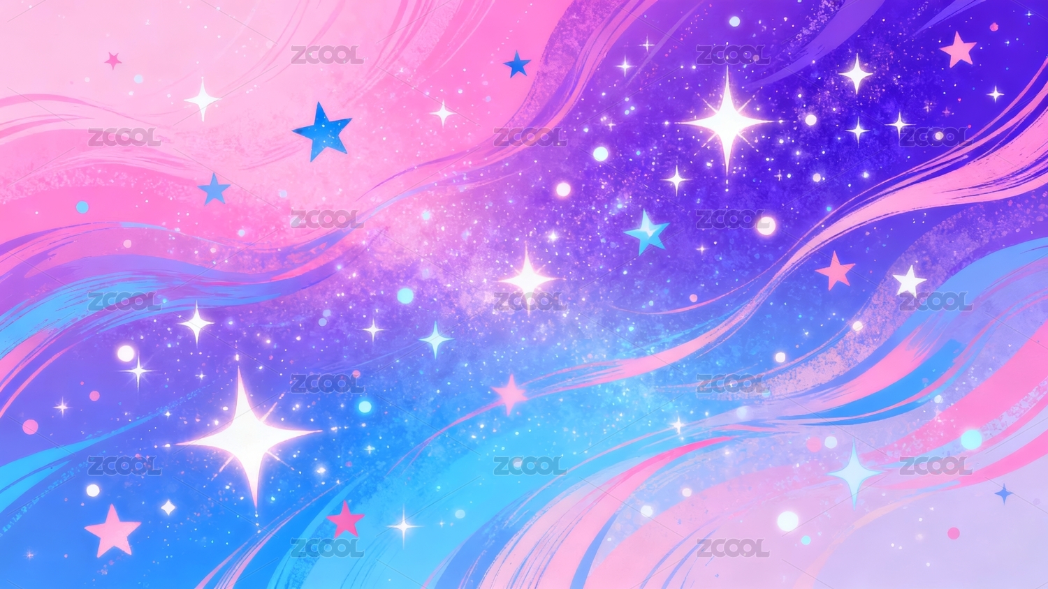 蓝粉波浪线条夜空星星