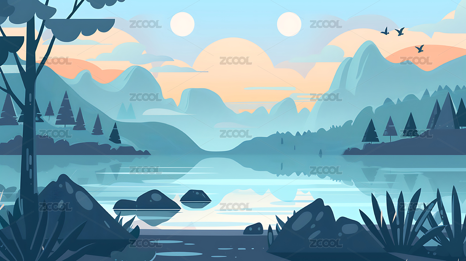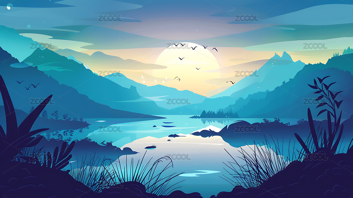 自然,天空,AI数字艺术,地形,风景,高山,户外,自然美,插画,背景