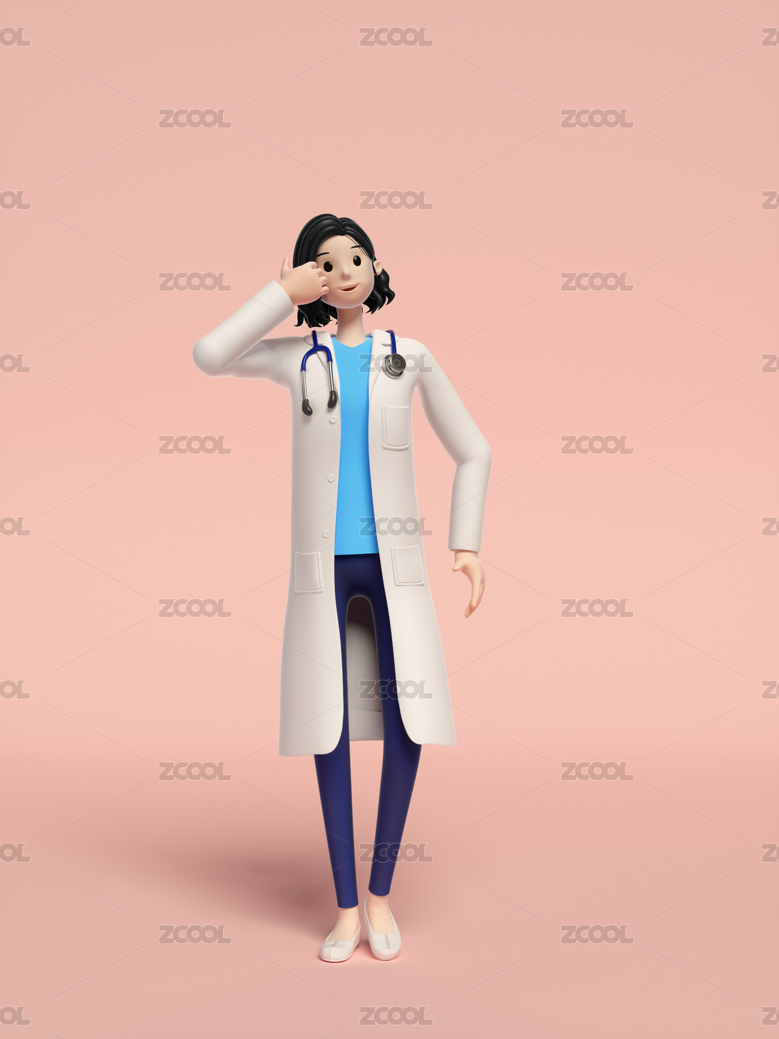 3d,女医生,开心,快乐,微笑,姿势,介绍,三维,医疗