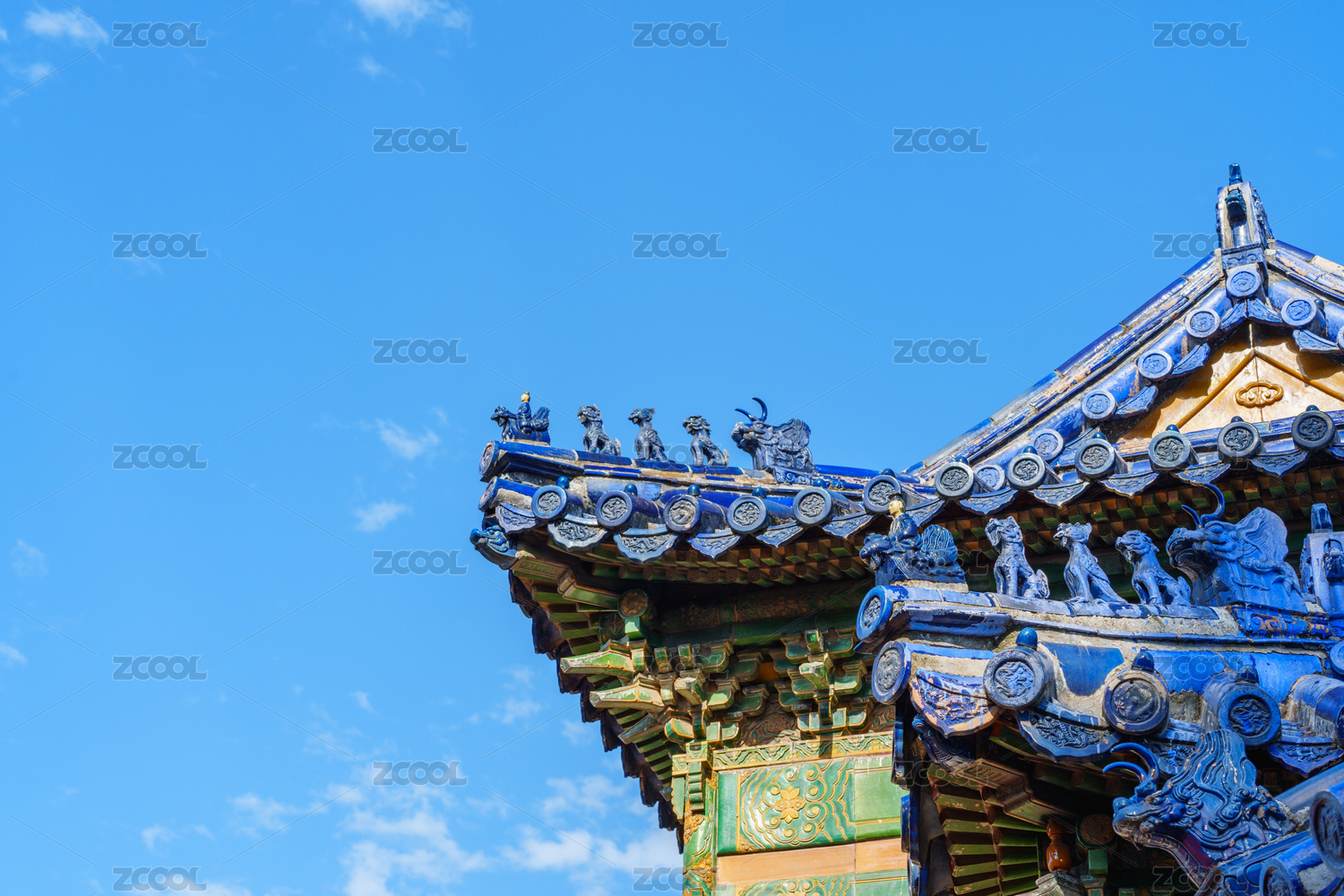 蓝天下的天坛皇穹宇宫殿脊兽特写