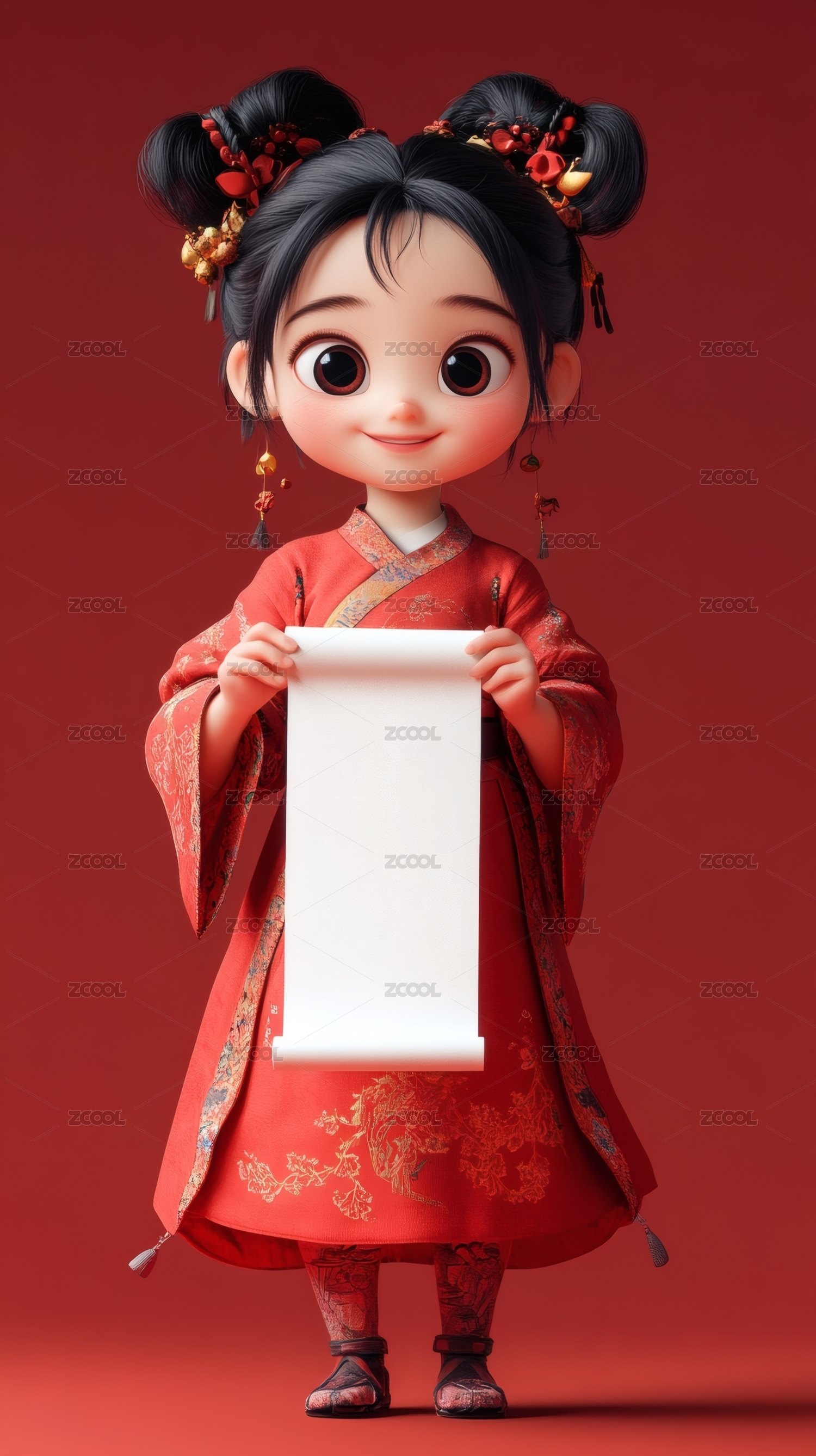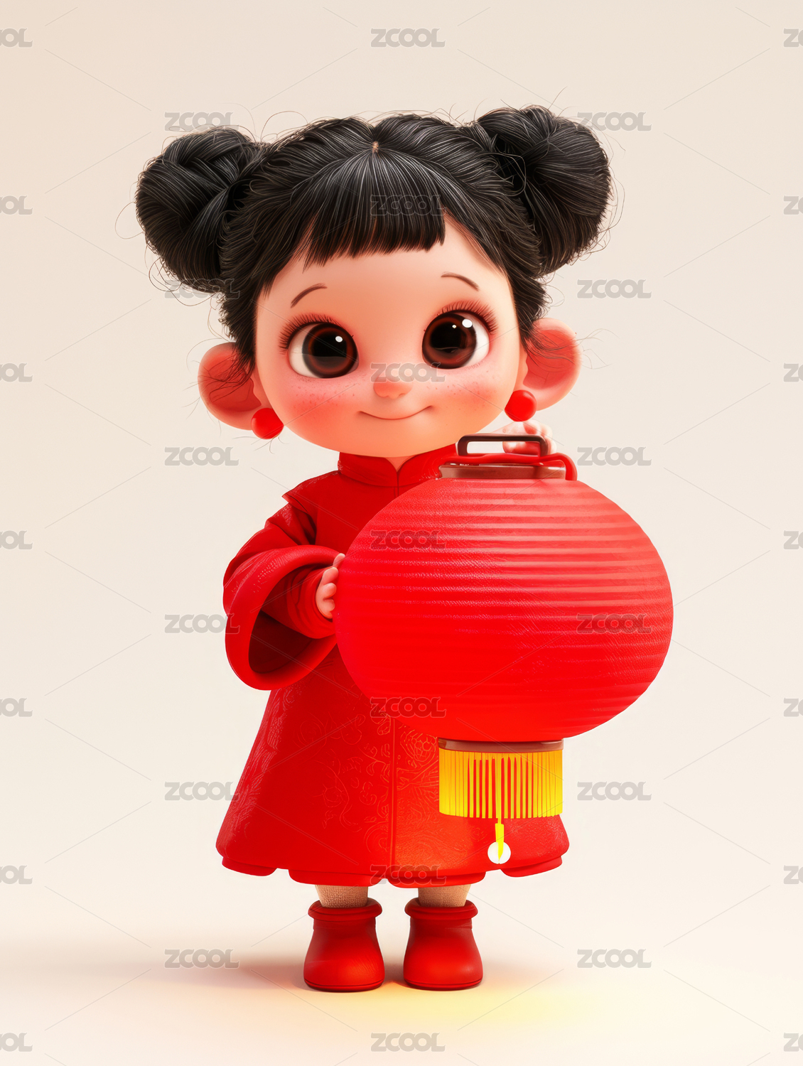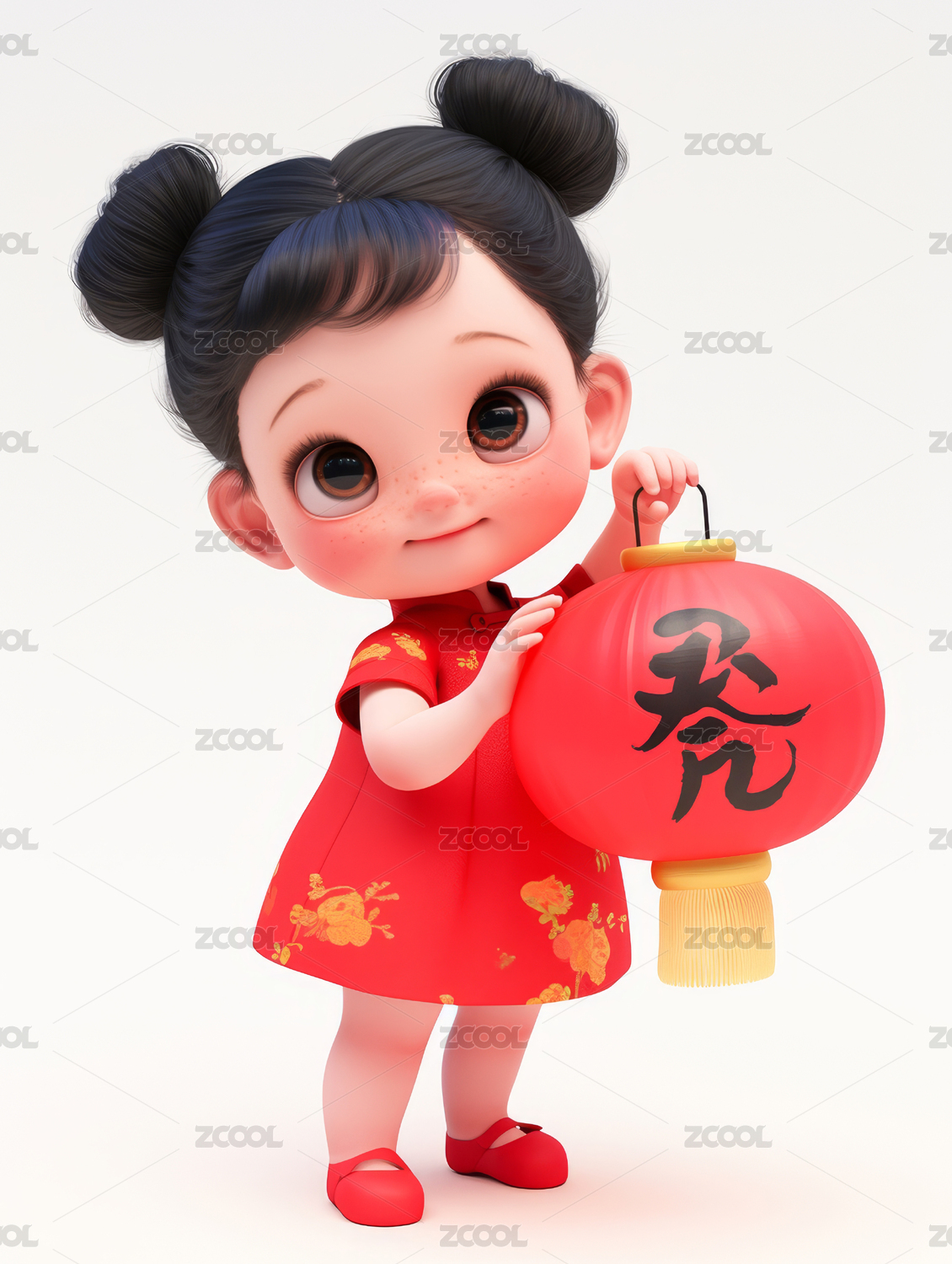 新年,可爱,卡通,3D,立体,白底图,红色,春节,过年,女孩
