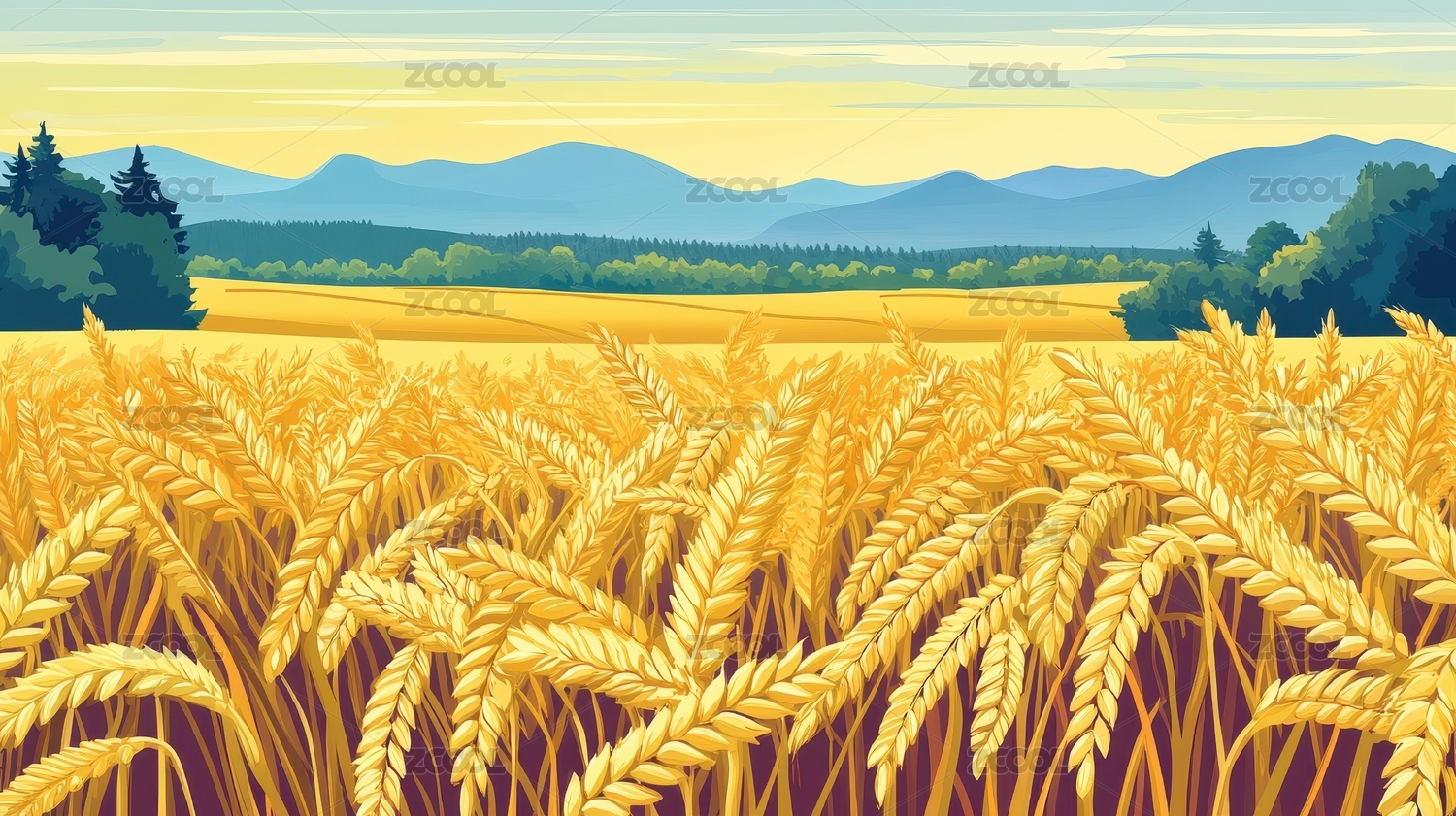 无人,自然,天空,地形,绿色,农作物,收获,田地,插画,自然美