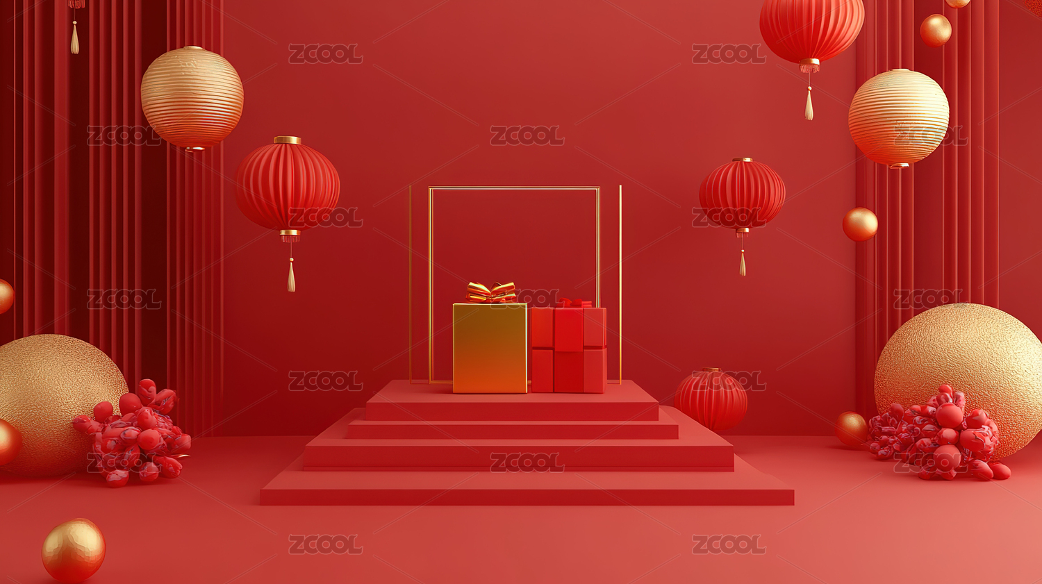 无人,促销,节日,插画,展览,设计,产品展台,几何形状,商品,春节