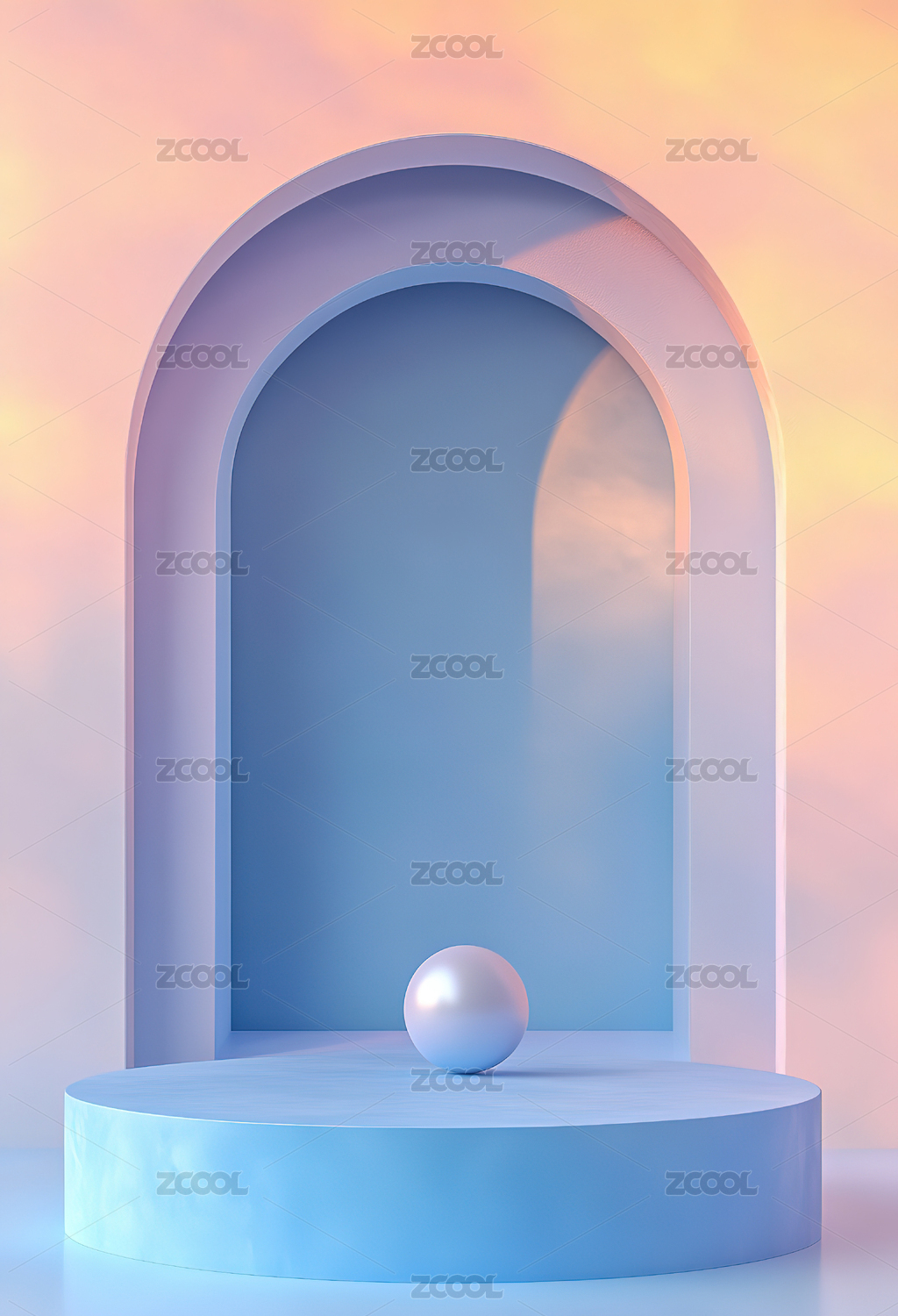 粉色拱门内的白色球体