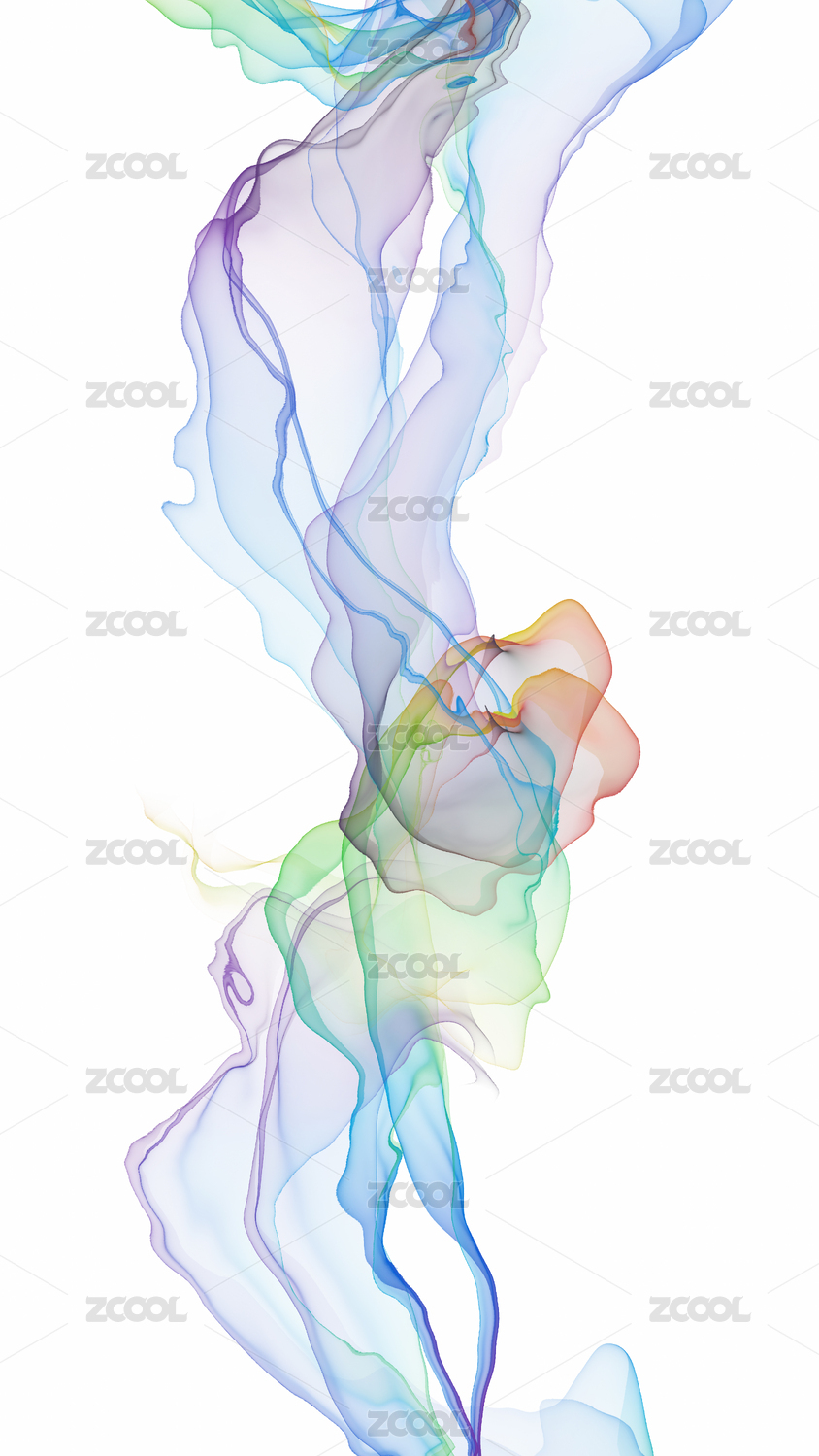 彩色烟雾在白色背景上的彩色烟雾特写镜头