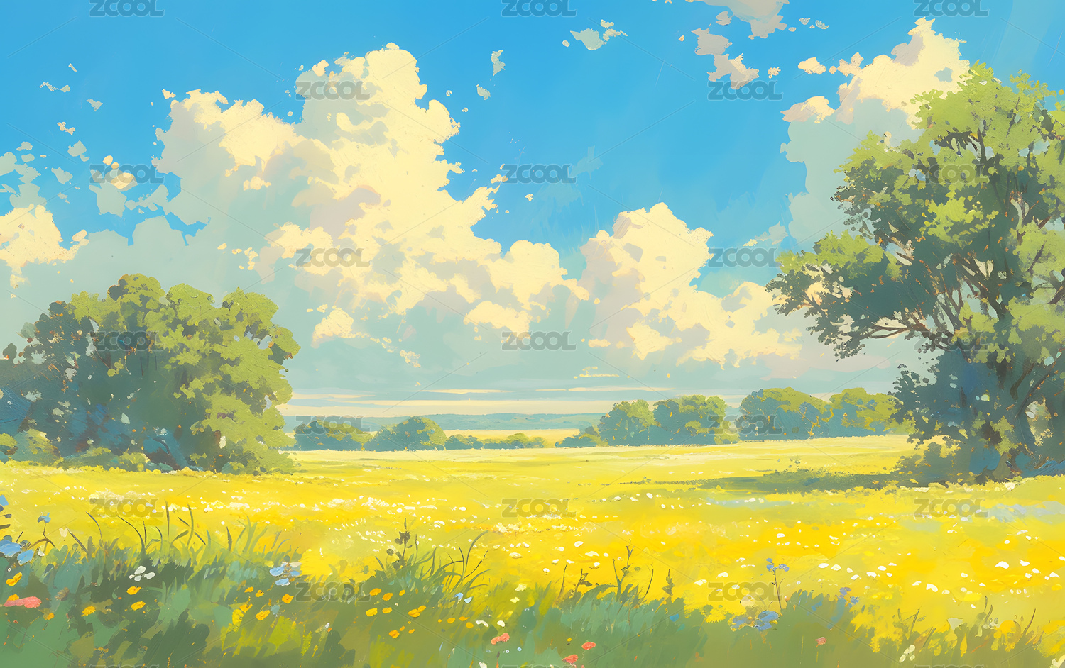 秋天,稻田,平原,原野,秋季,壁纸,油画风,油画,风景,大自然