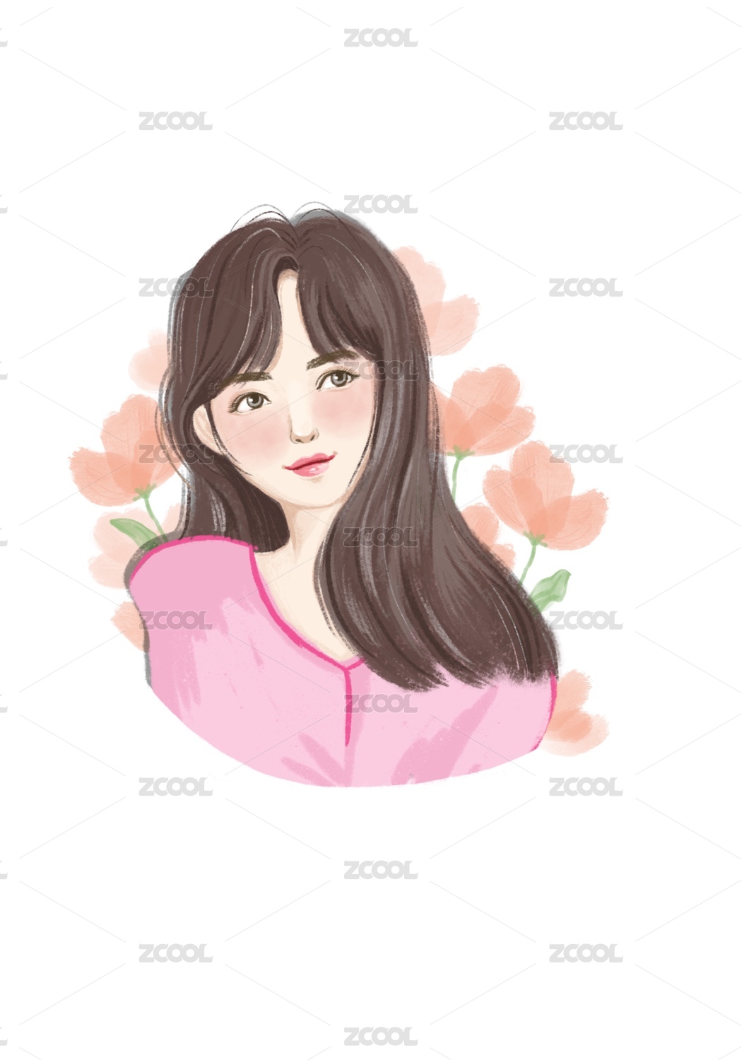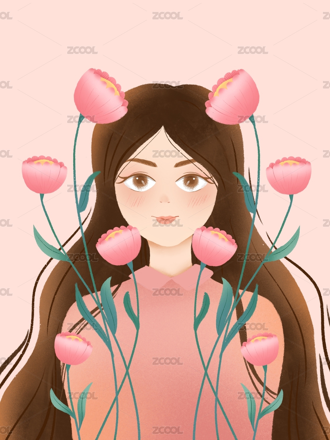 小清新手绘少女插画