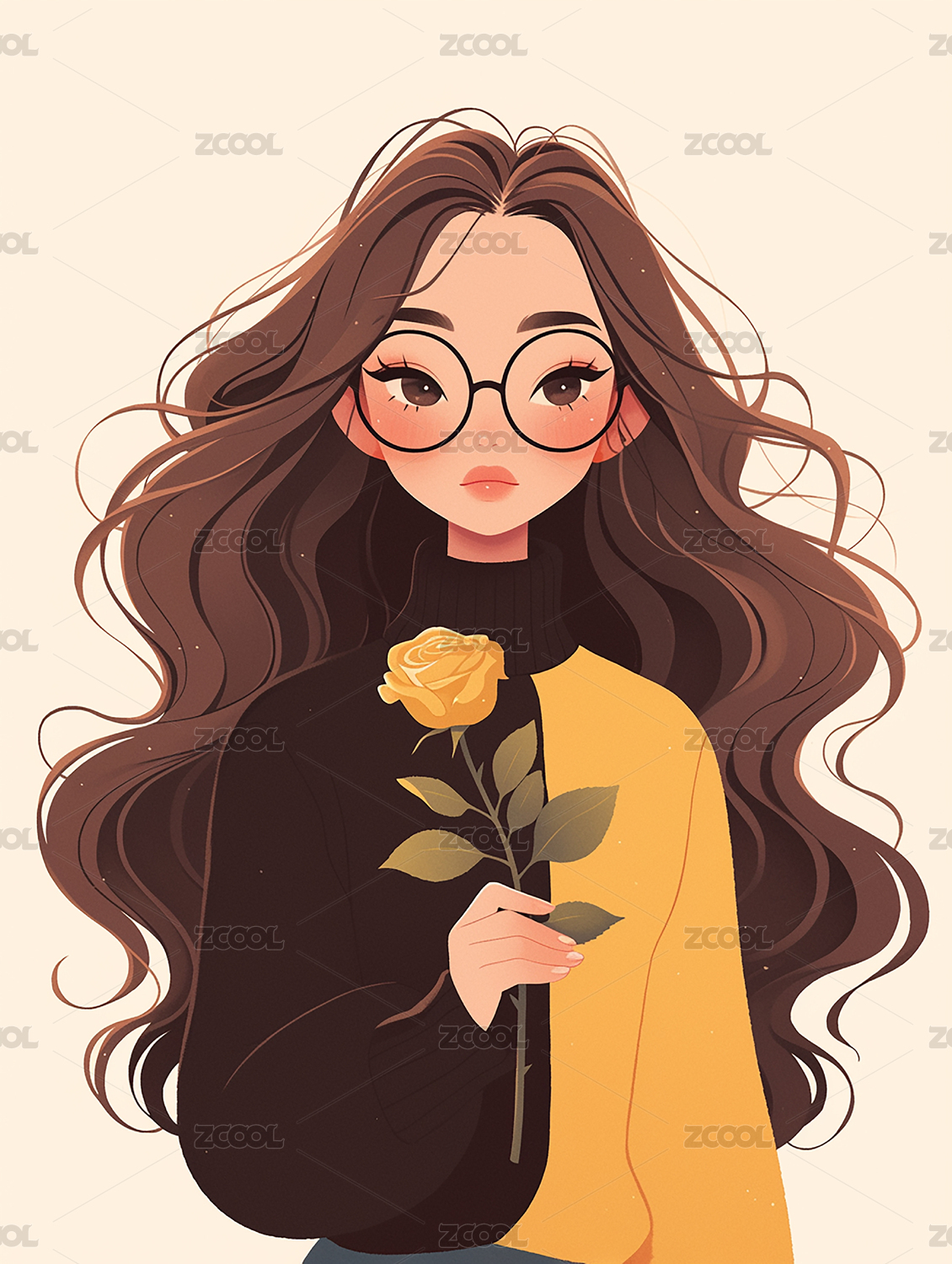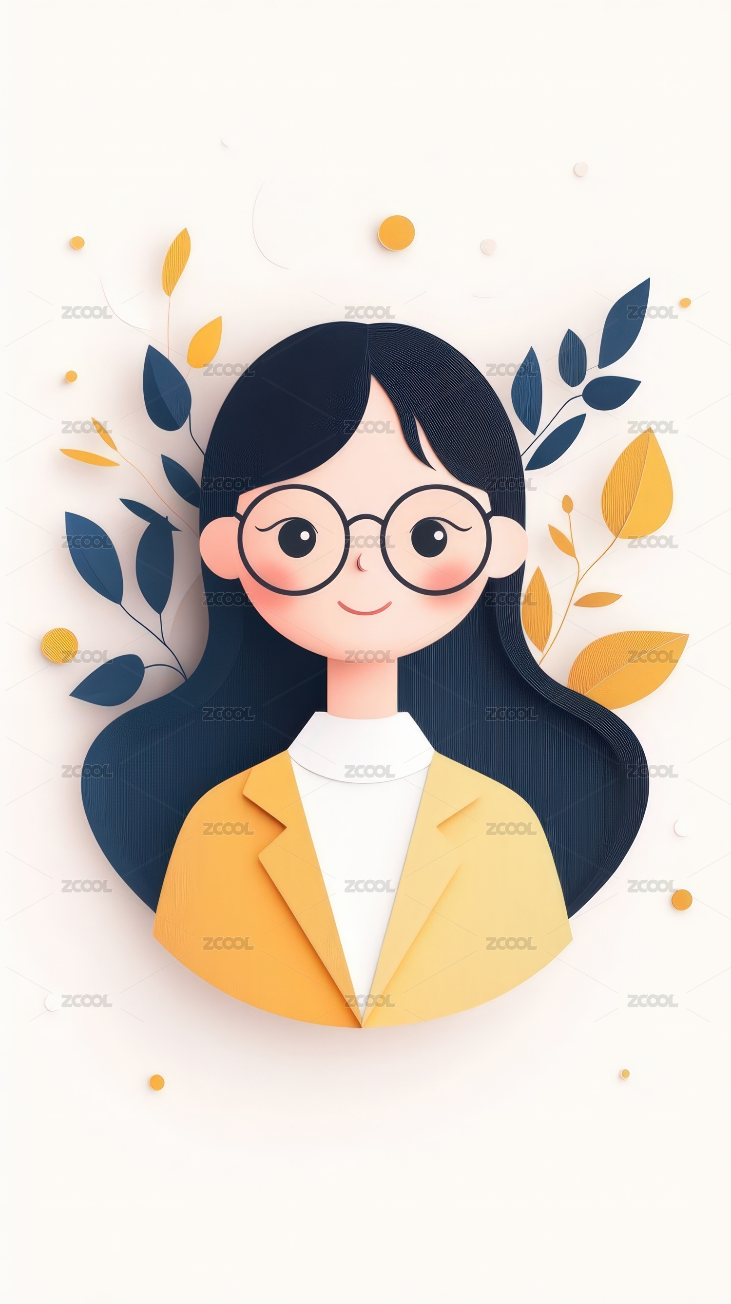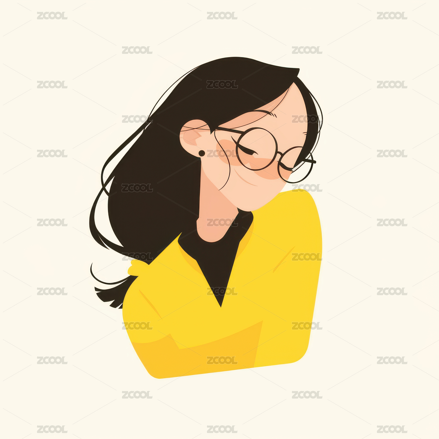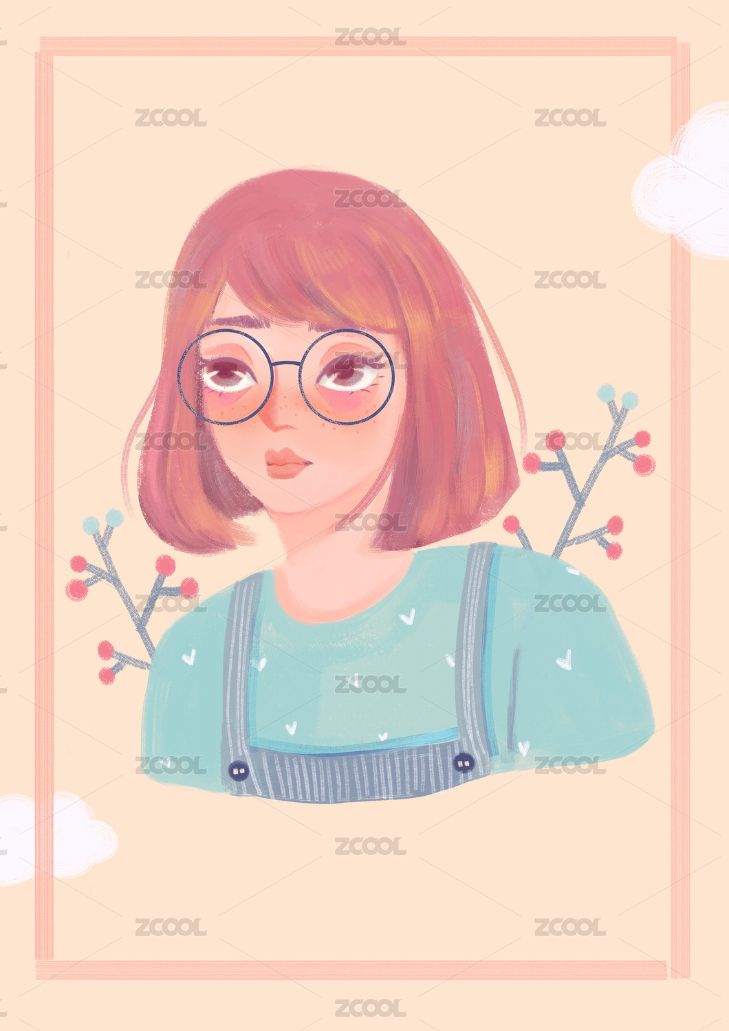 戴眼镜的可爱甜美文艺青年女孩插画