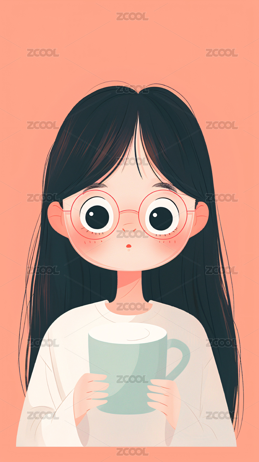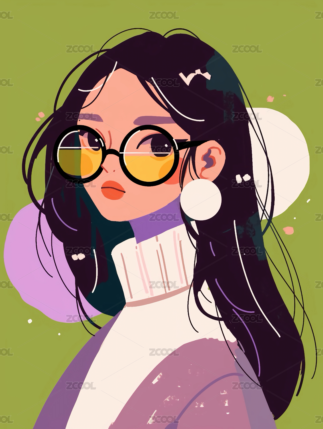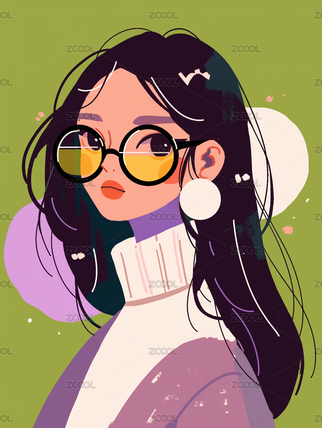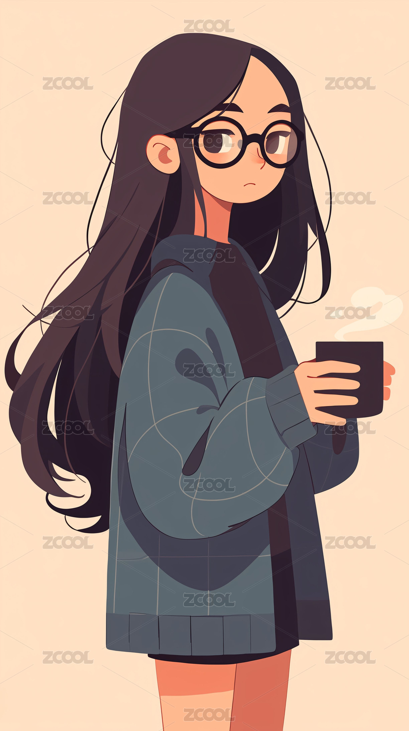 戴眼镜的可爱甜美文艺青年女孩插画