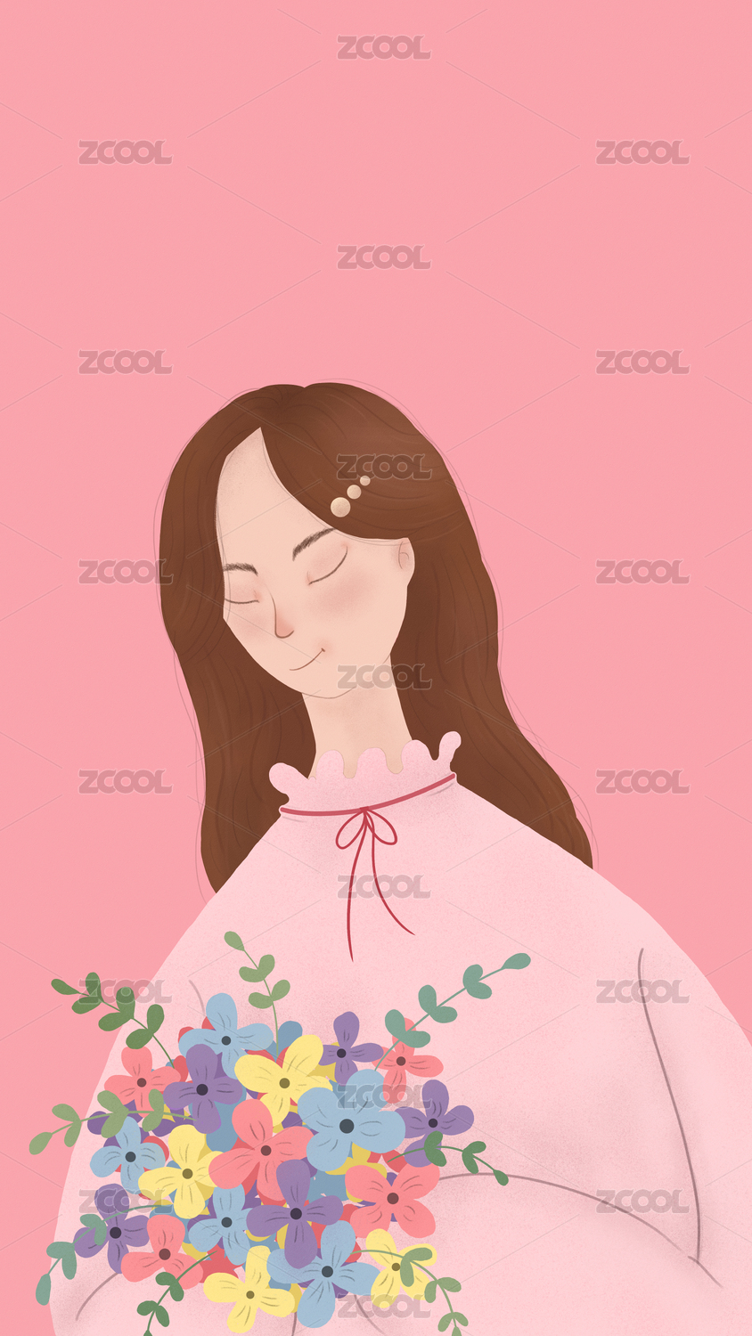 捧花少女插画
