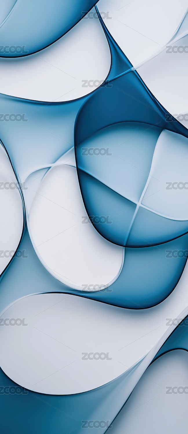抽象蓝青色曲线构成的现代图案