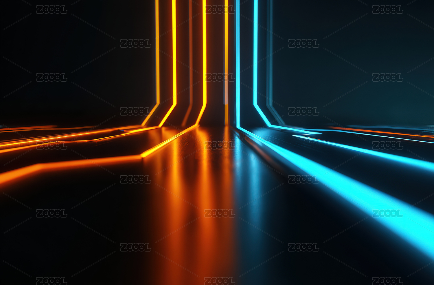 霓虹灯线条的现代科技感场景