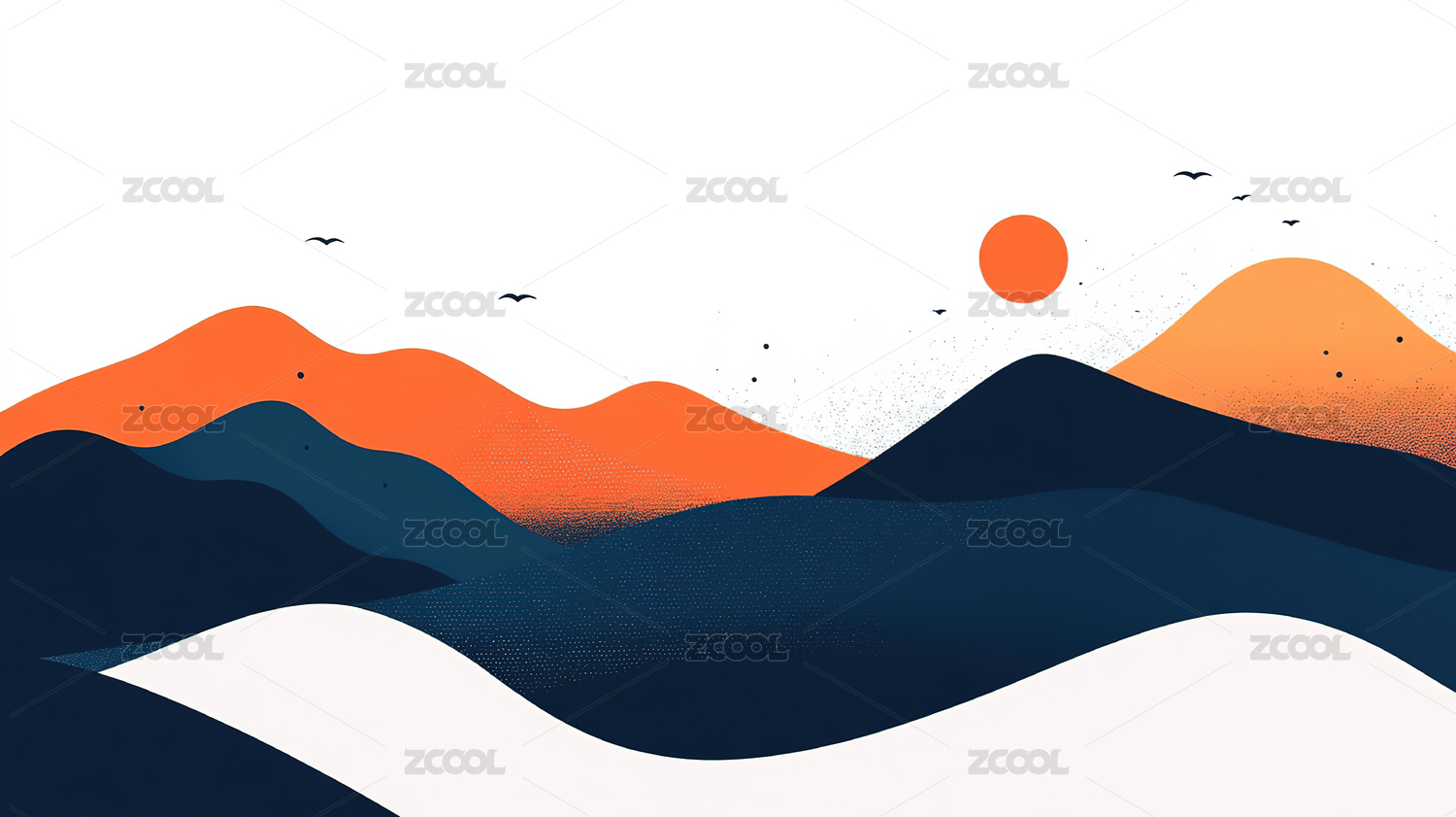 国潮风,河流,太阳,水彩画,复古,梦幻,宁静,安静,文化,水