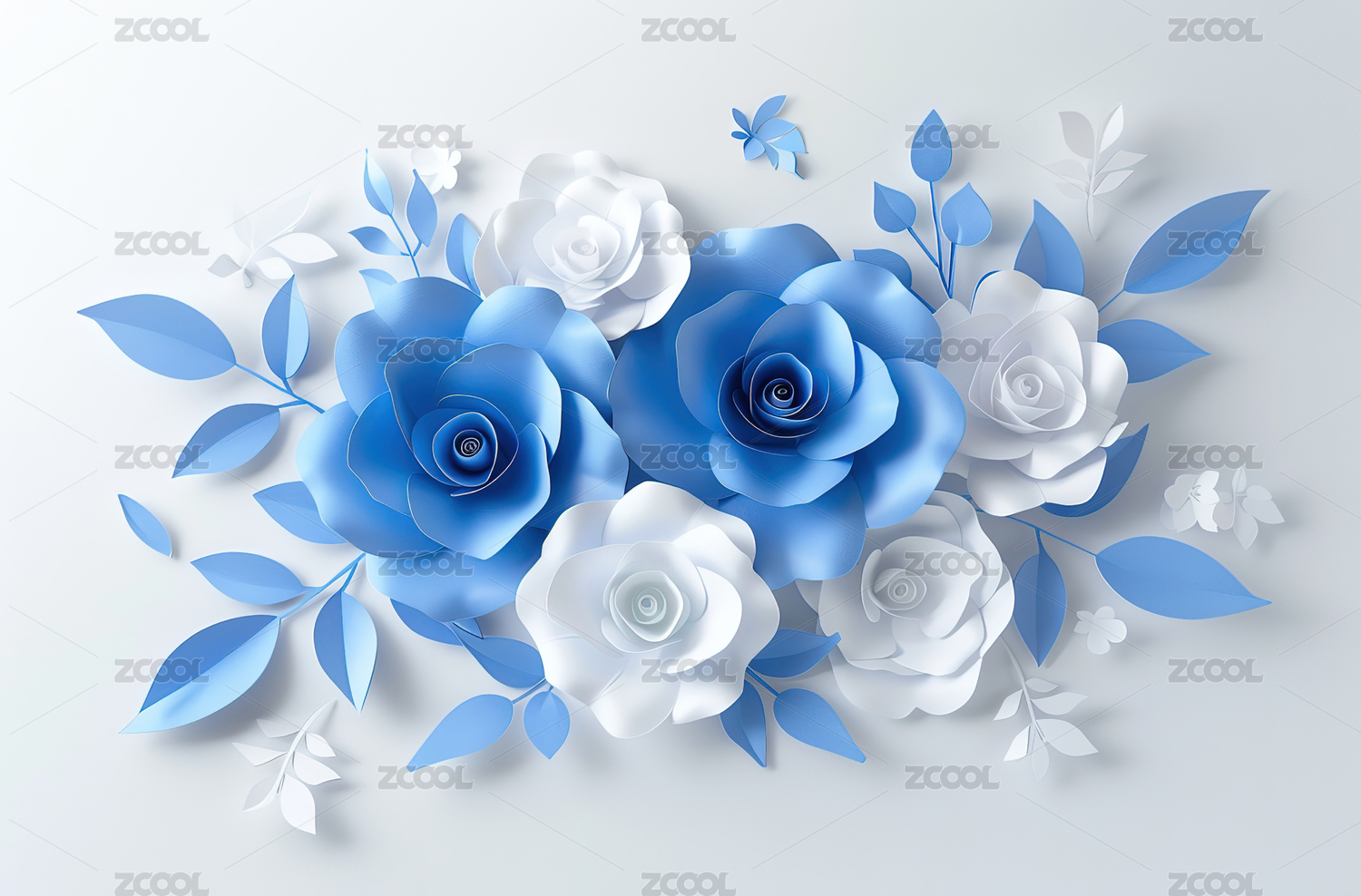 3D,节日,插图,插画,花朵,纸材质,三维图像,叶子,绿叶,自然