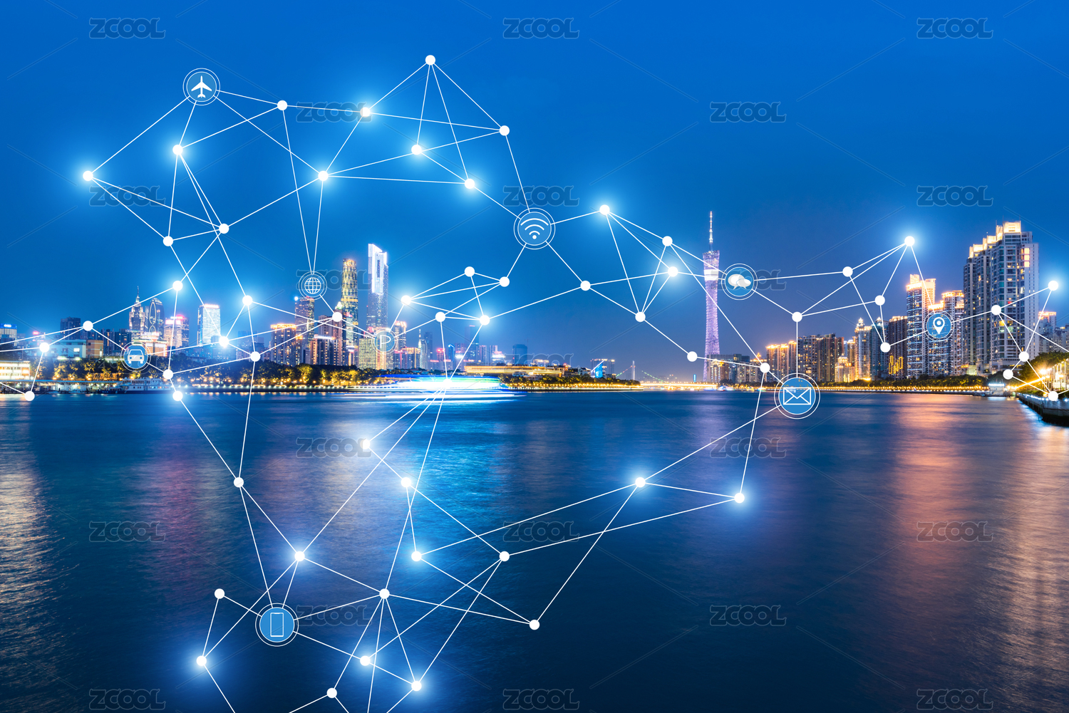 广州现代建筑智慧城市天际线,互联网5G高速发展,人工智能大数据概念
