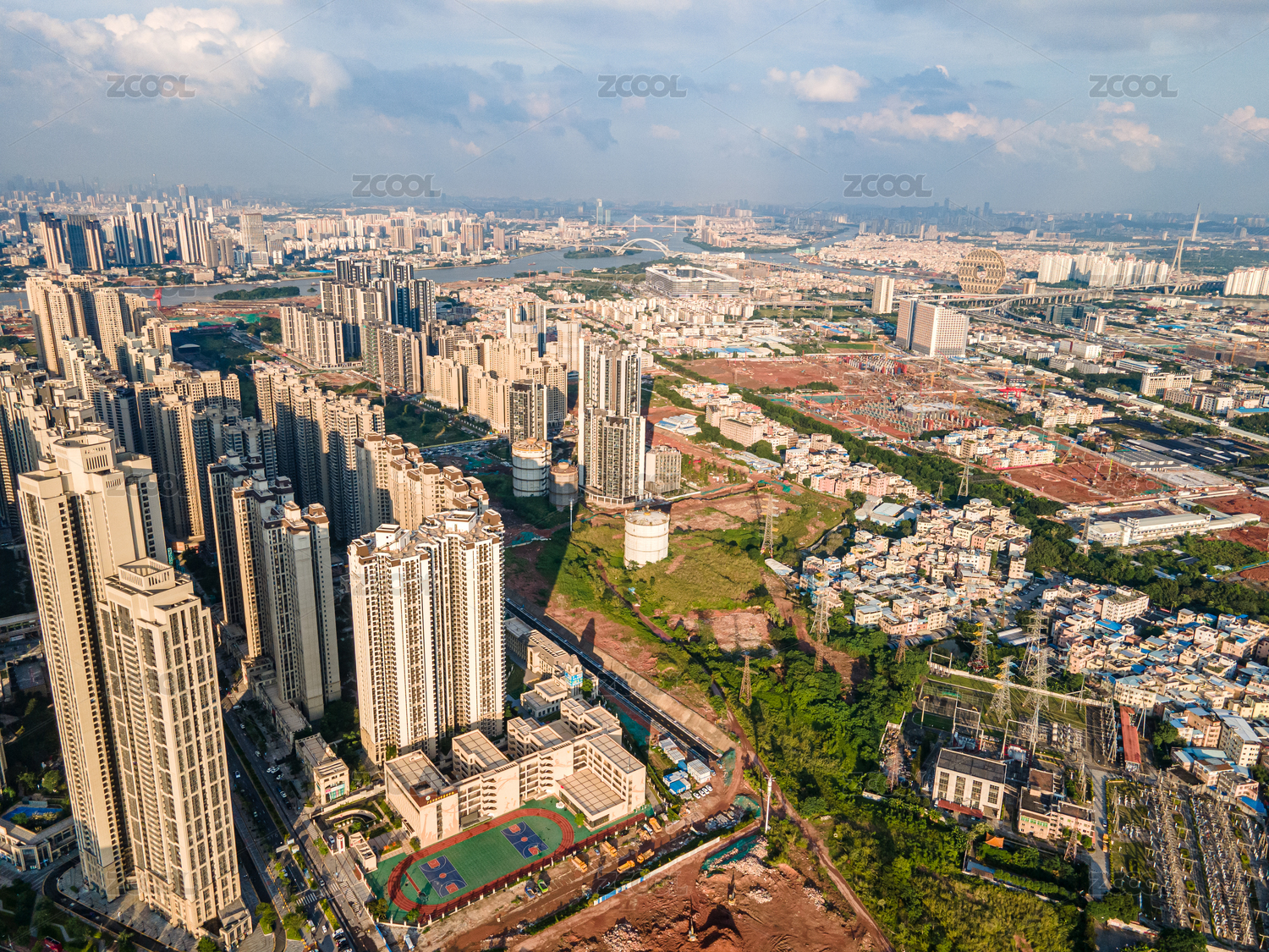 中国广州城市摩天建筑群航拍