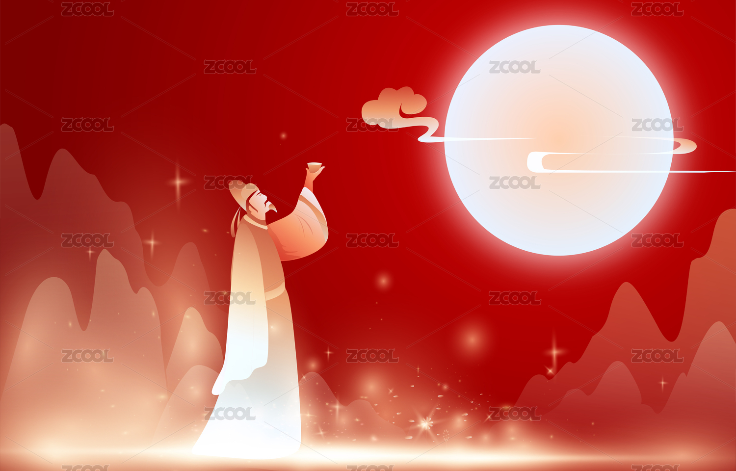 国潮中国传统节日中秋节诗人举杯饮酒庆典海