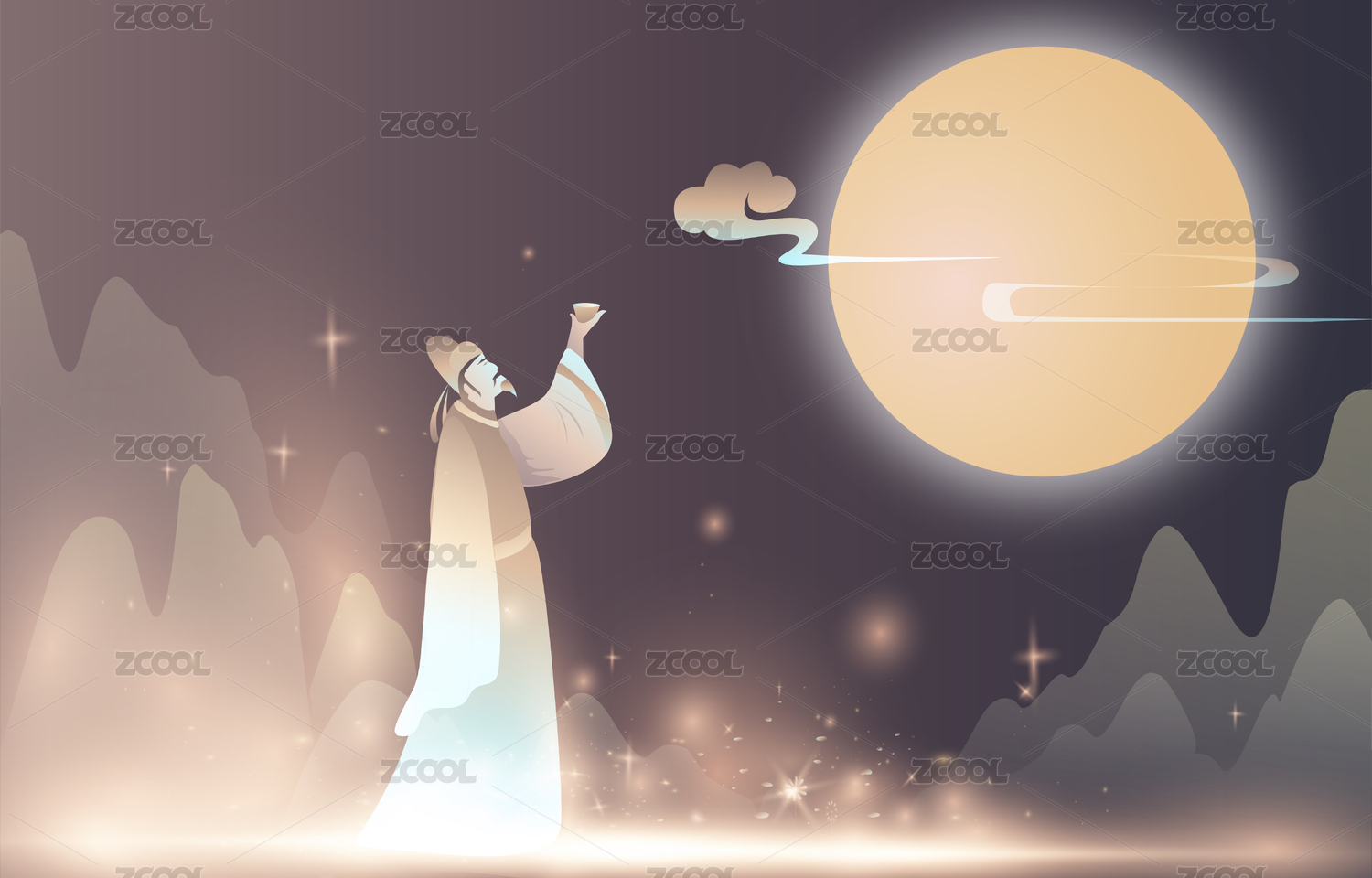 中秋节月圆夜古人诗人李白举杯邀明月插画