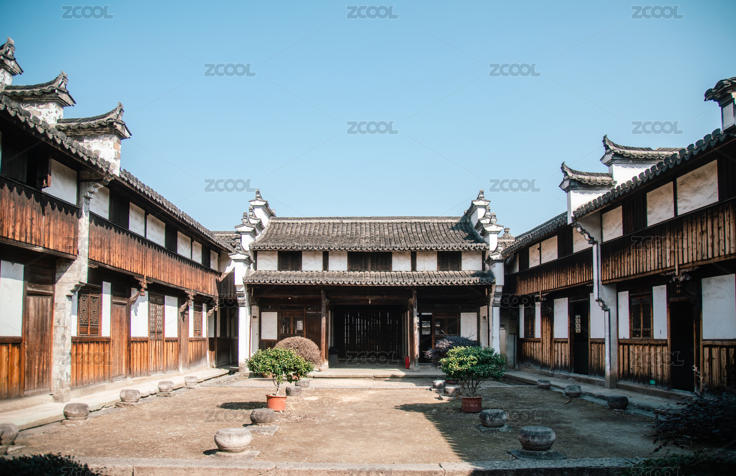 中国安徽黄山唐模古镇里的大宅庭院风光