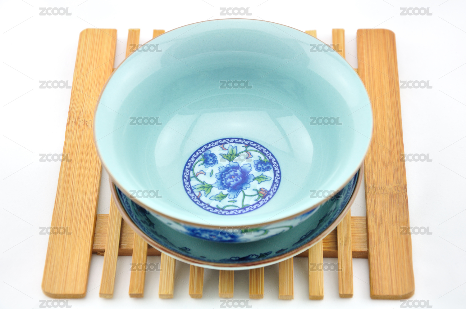 白背景上一只空青花瓷碗
