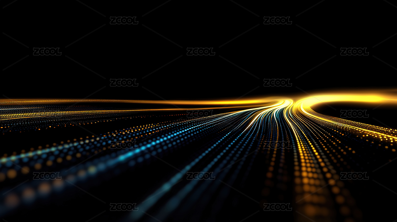 蓝色弯曲弧形放射状发光的光线科技线条背景