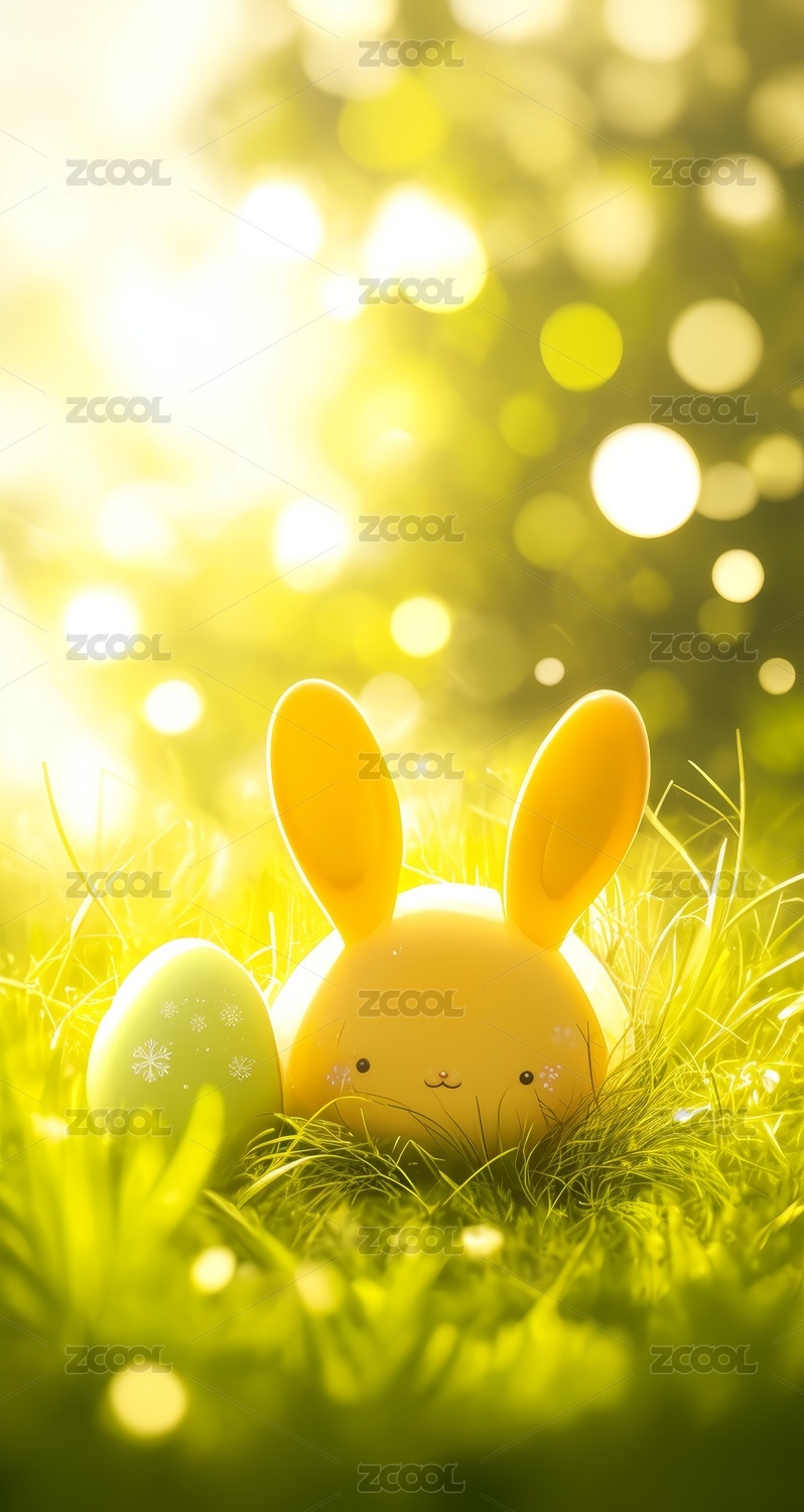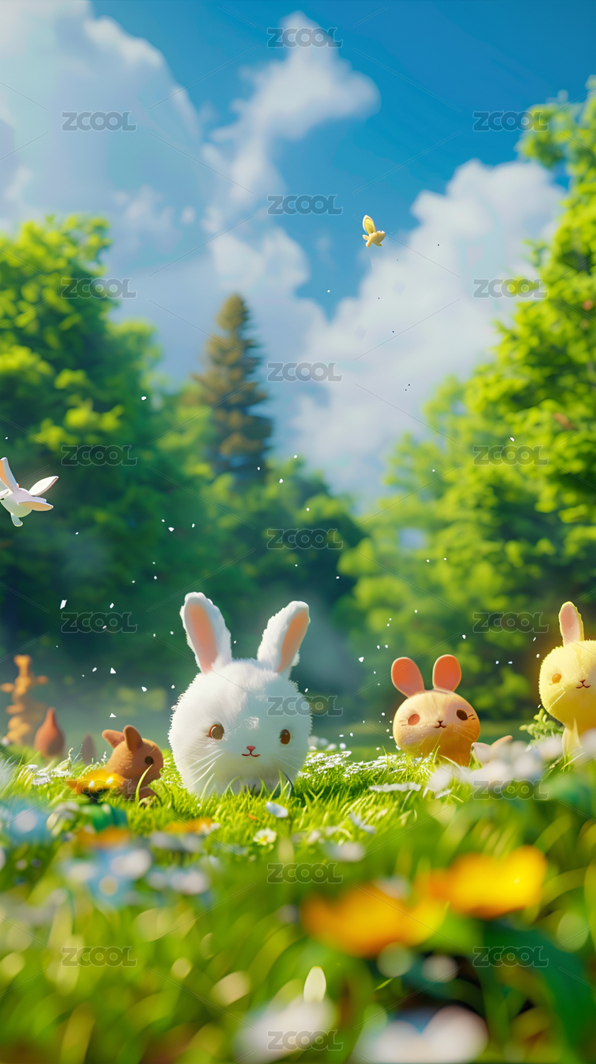 草地萌兔温馨场景图
