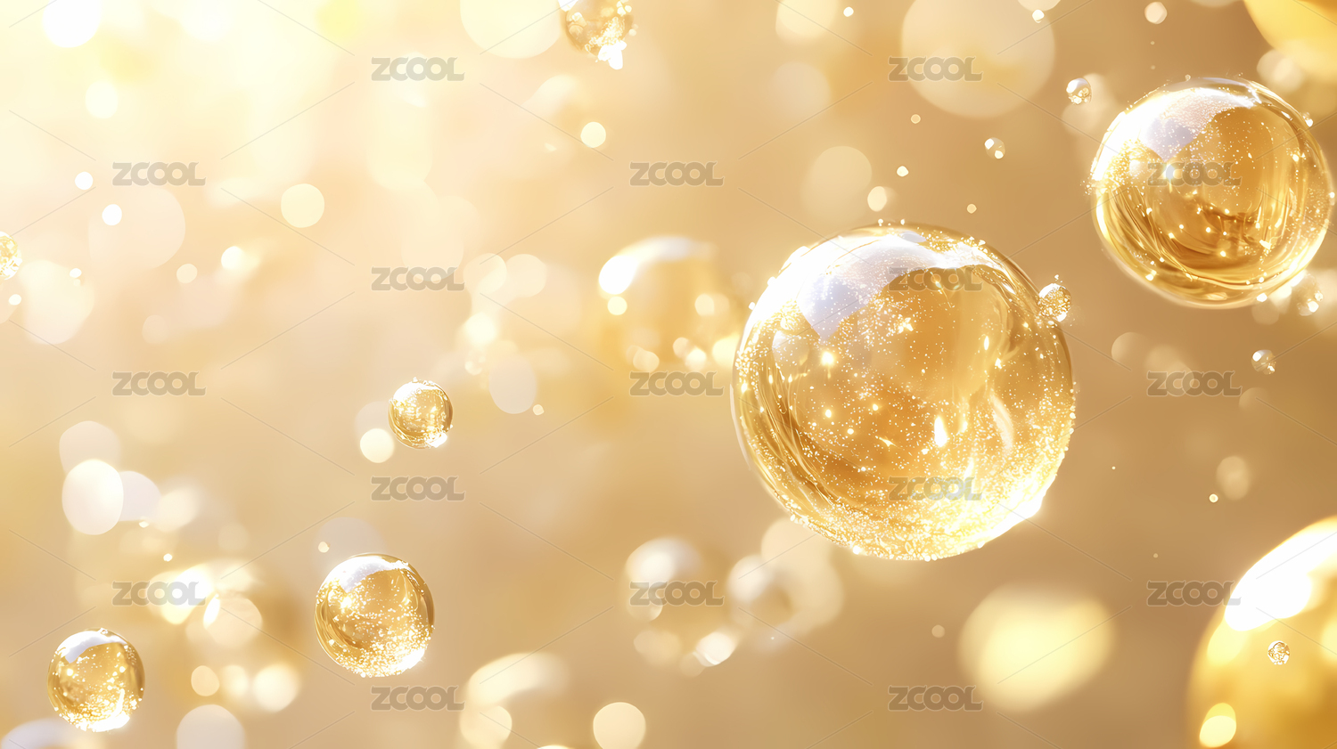 悬浮的金色精华液气泡