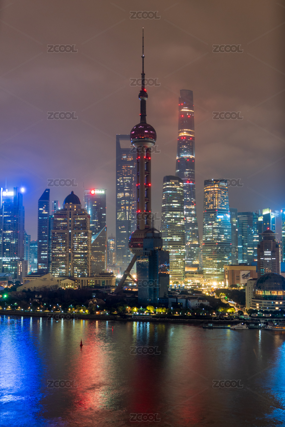 上海地标建筑东方明珠陆家嘴夜景城市风光