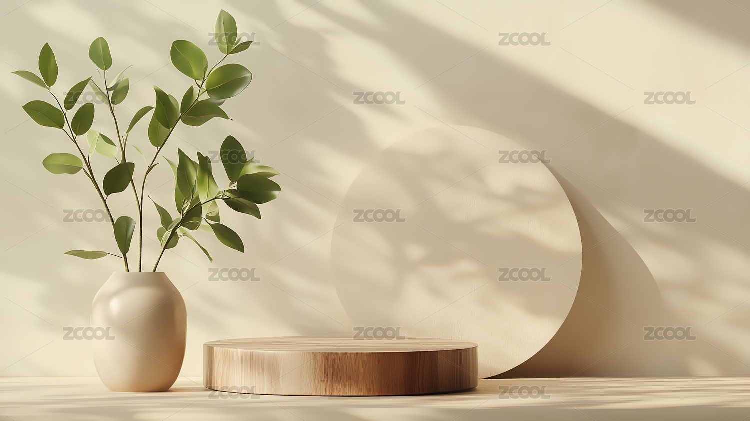 3D简约自然光影下的木质展示台