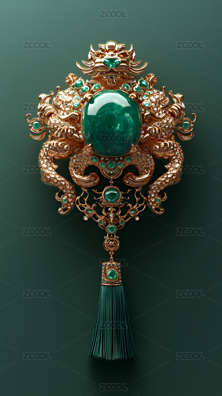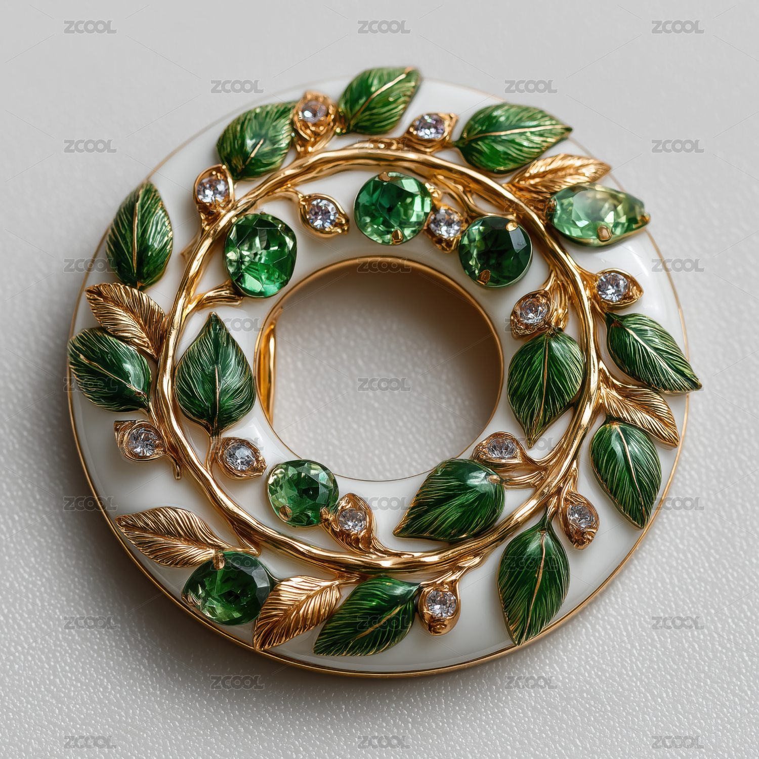 蓝绿宝石金纹胸针典雅珠宝饰品