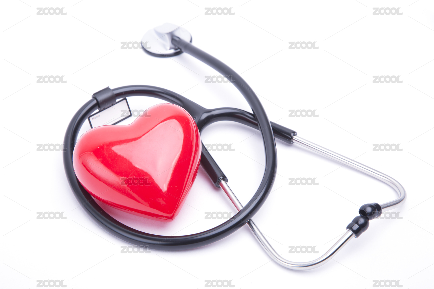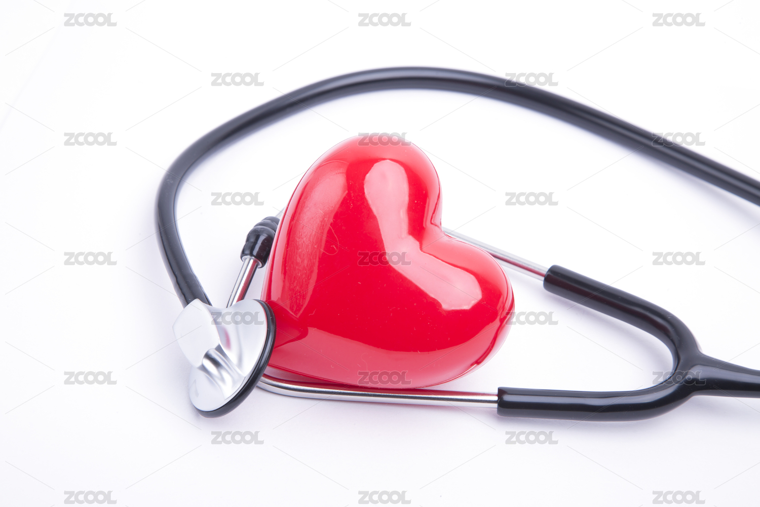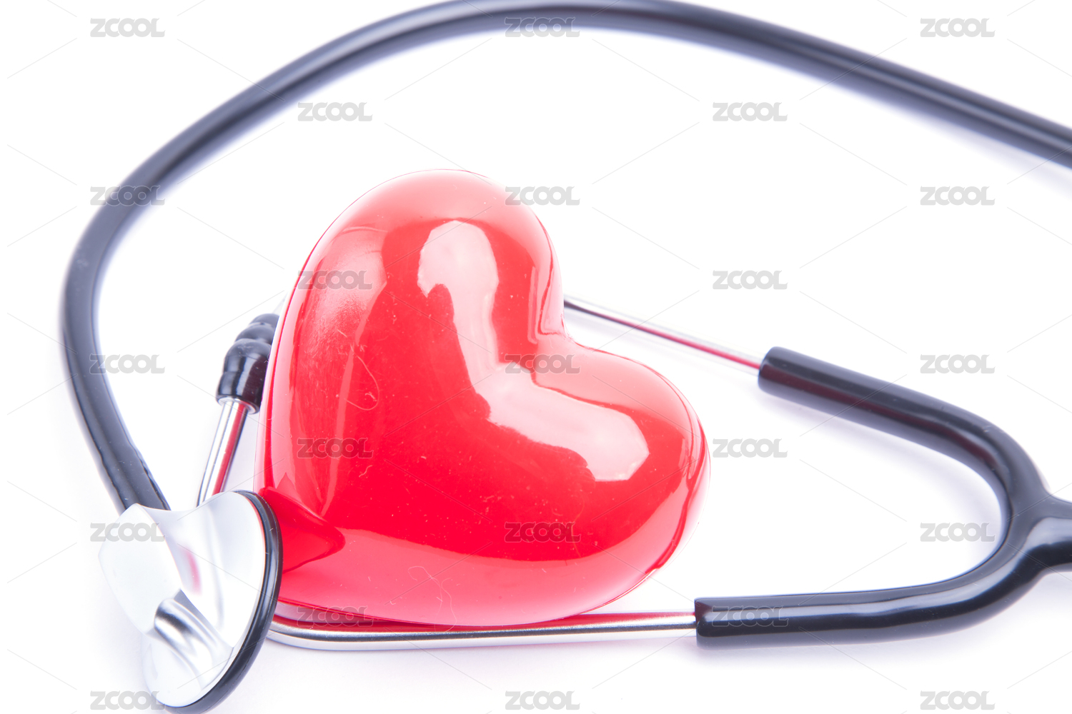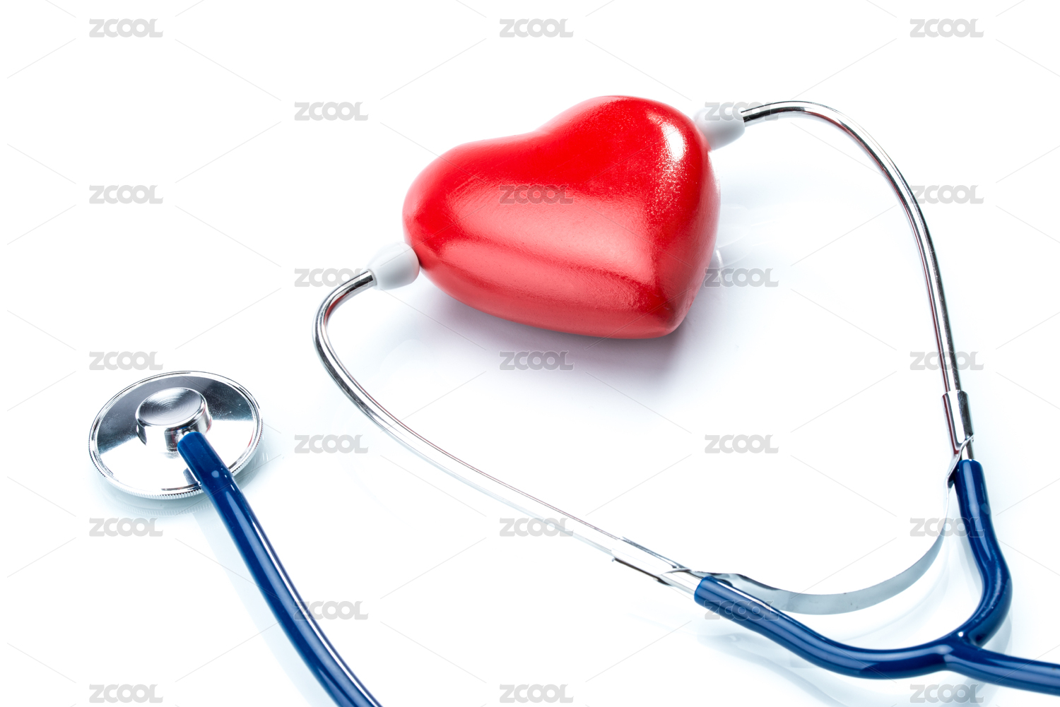 红色心脏听诊器隔绝在白色背景,医疗保健