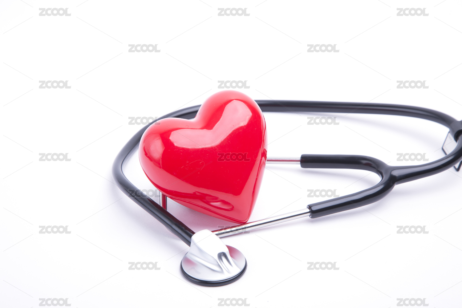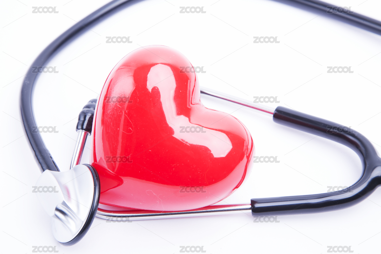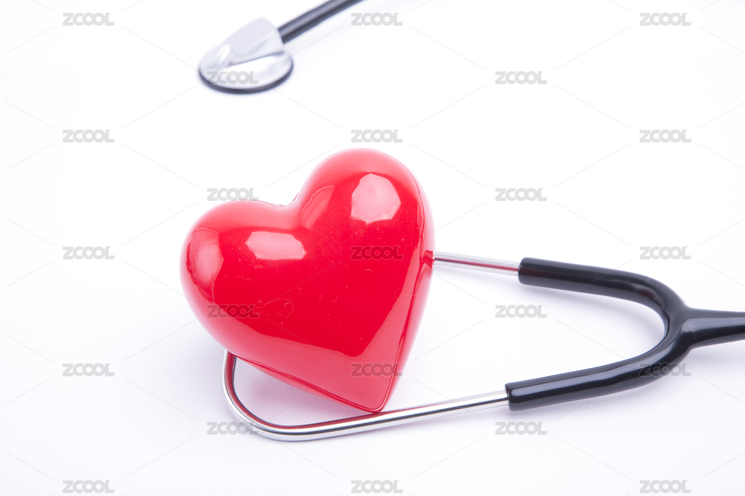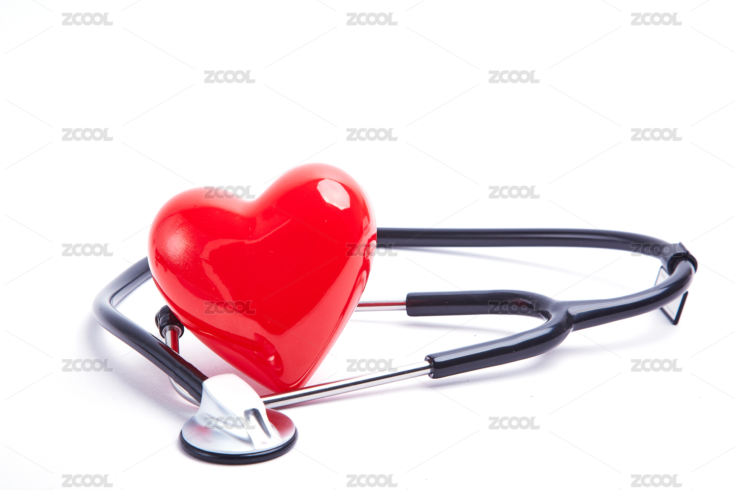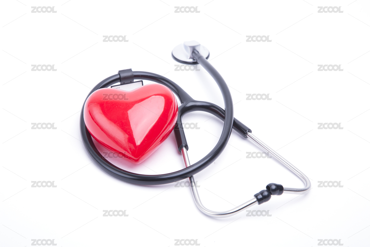 红色心脏听诊器隔绝在白色背景,医疗保健