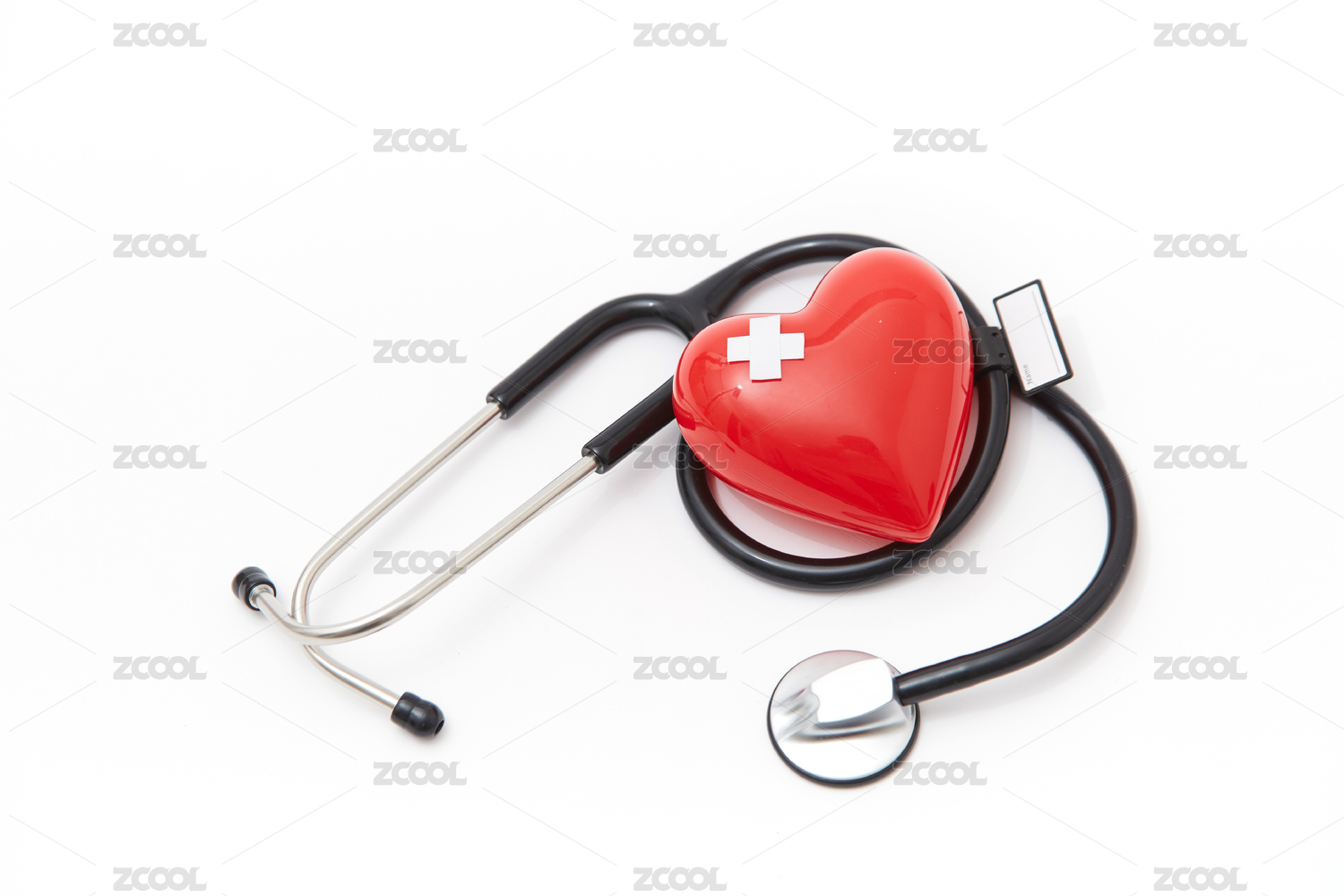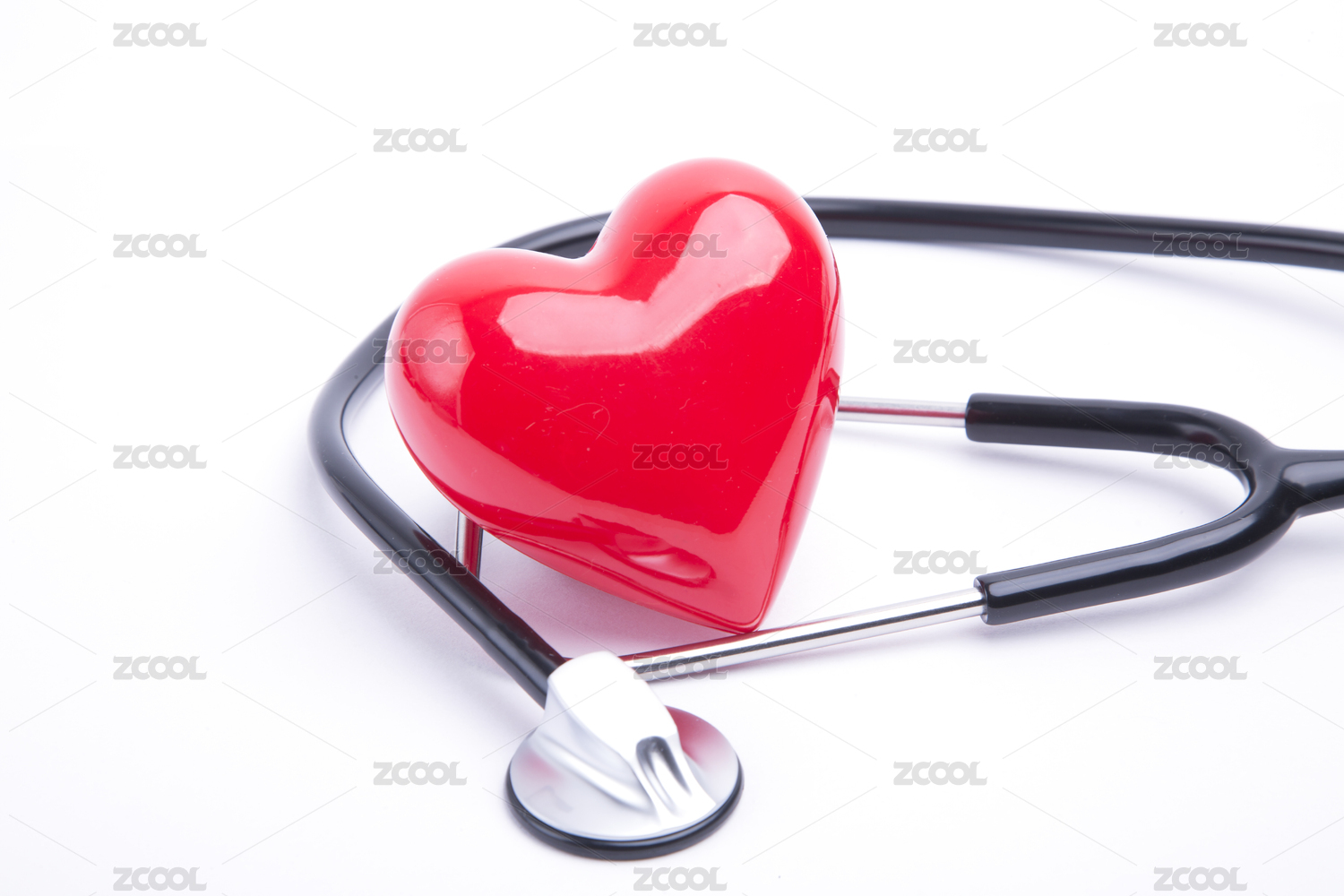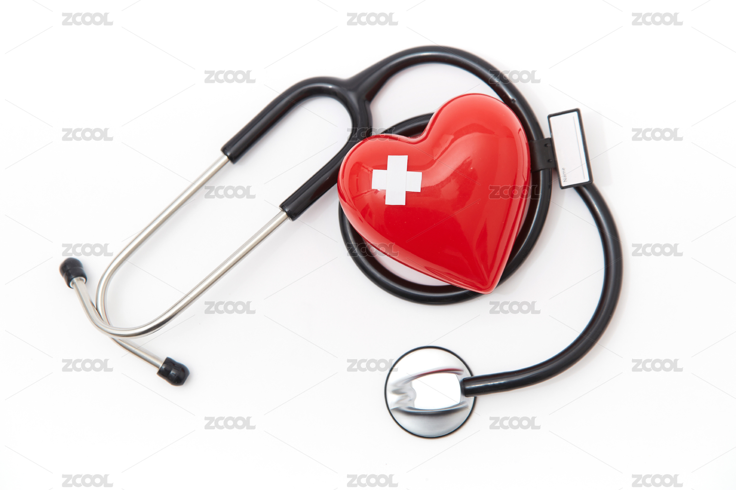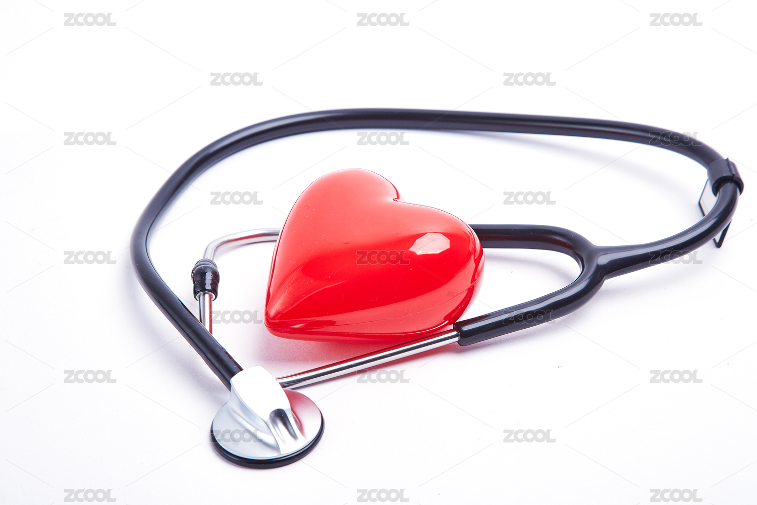 红色心脏听诊器隔绝在白色背景,医疗保健