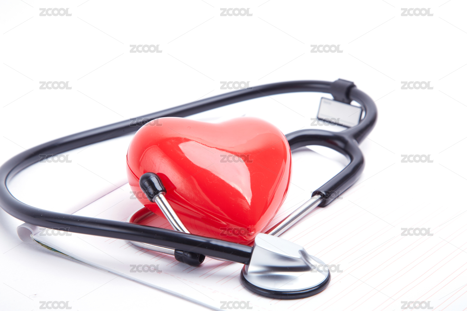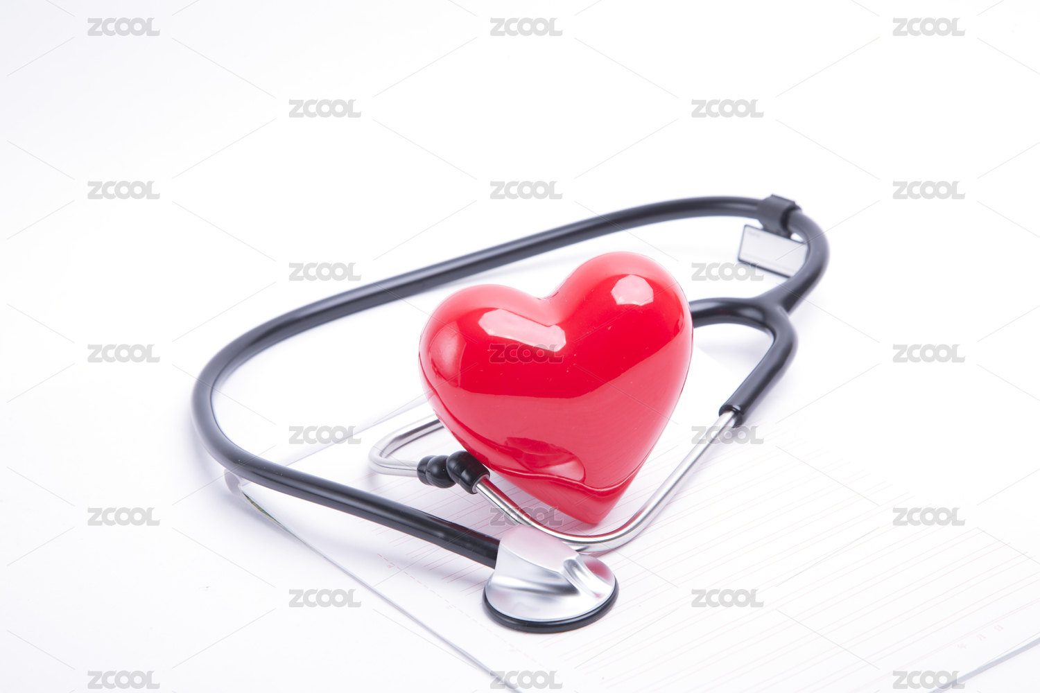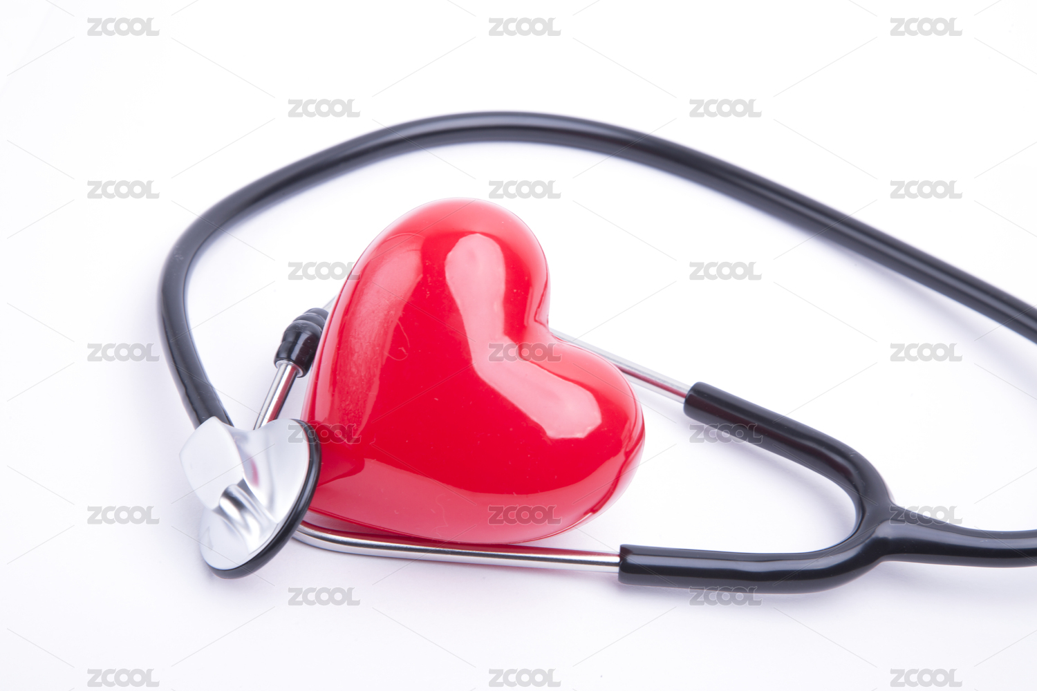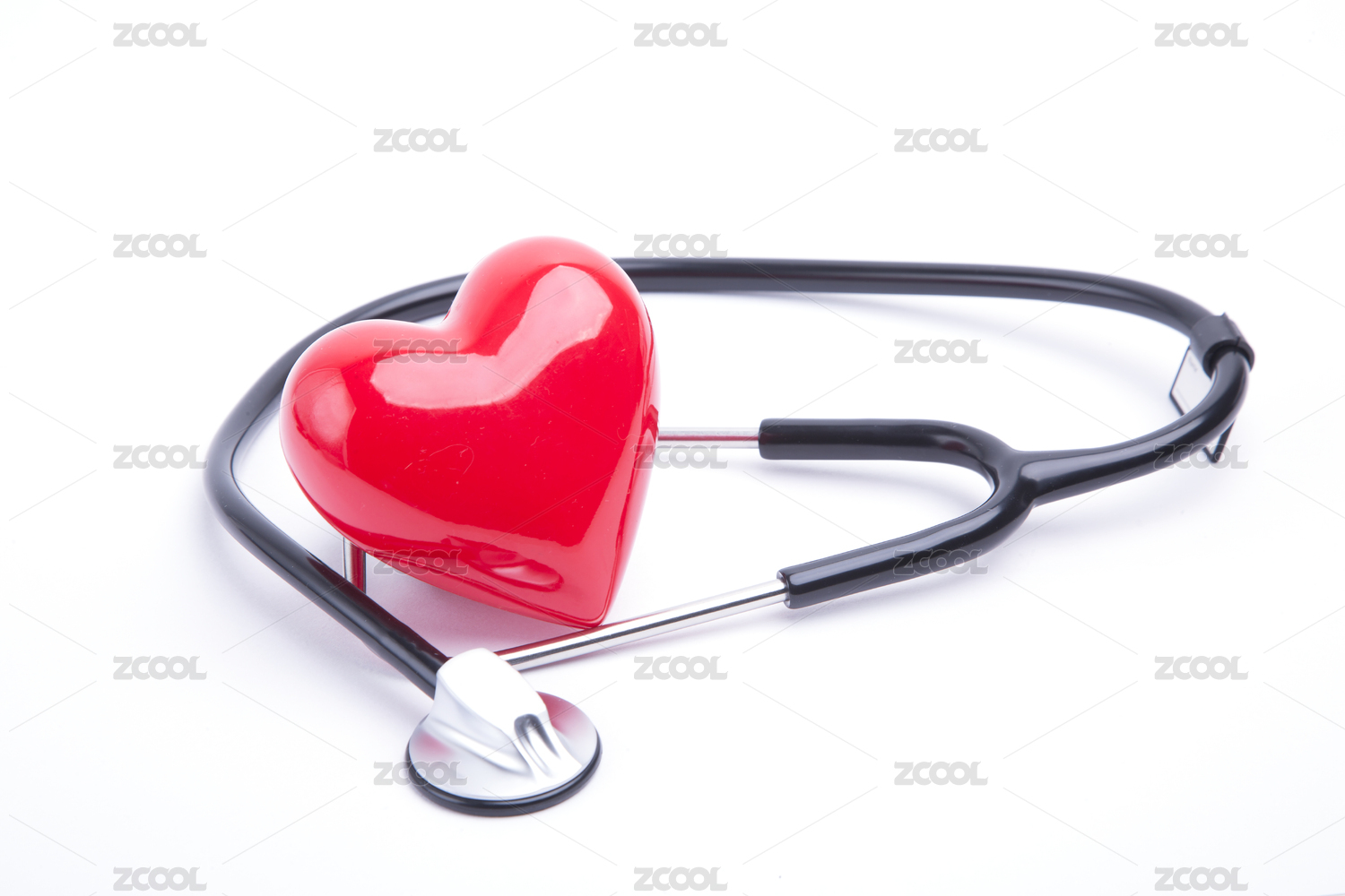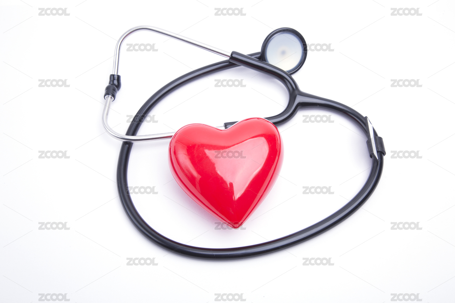 红色心脏听诊器隔绝在白色背景,医疗保健