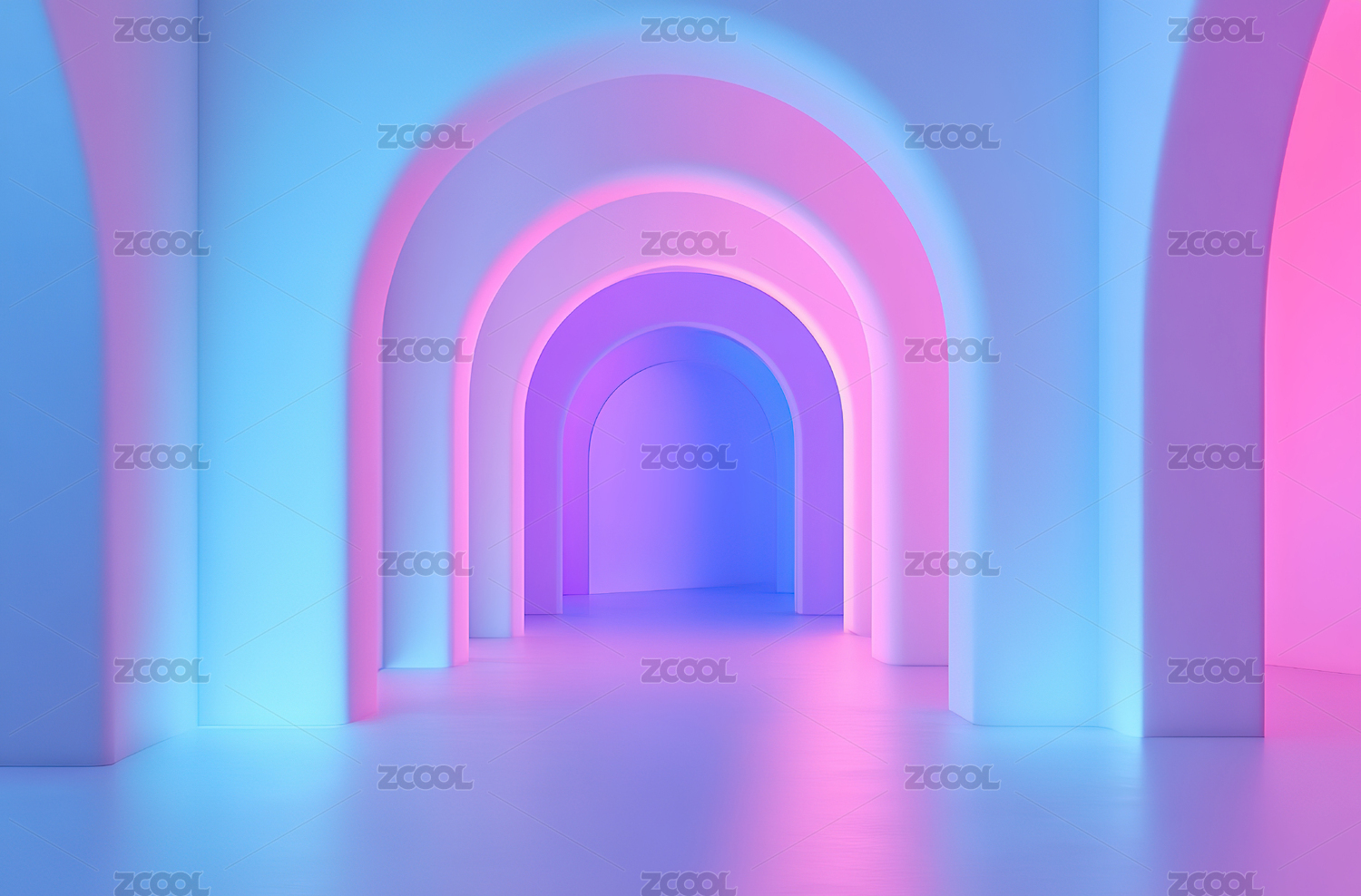 粉色,建筑,三维,场景,曲线,拱形,入口,舞台,电商,背景