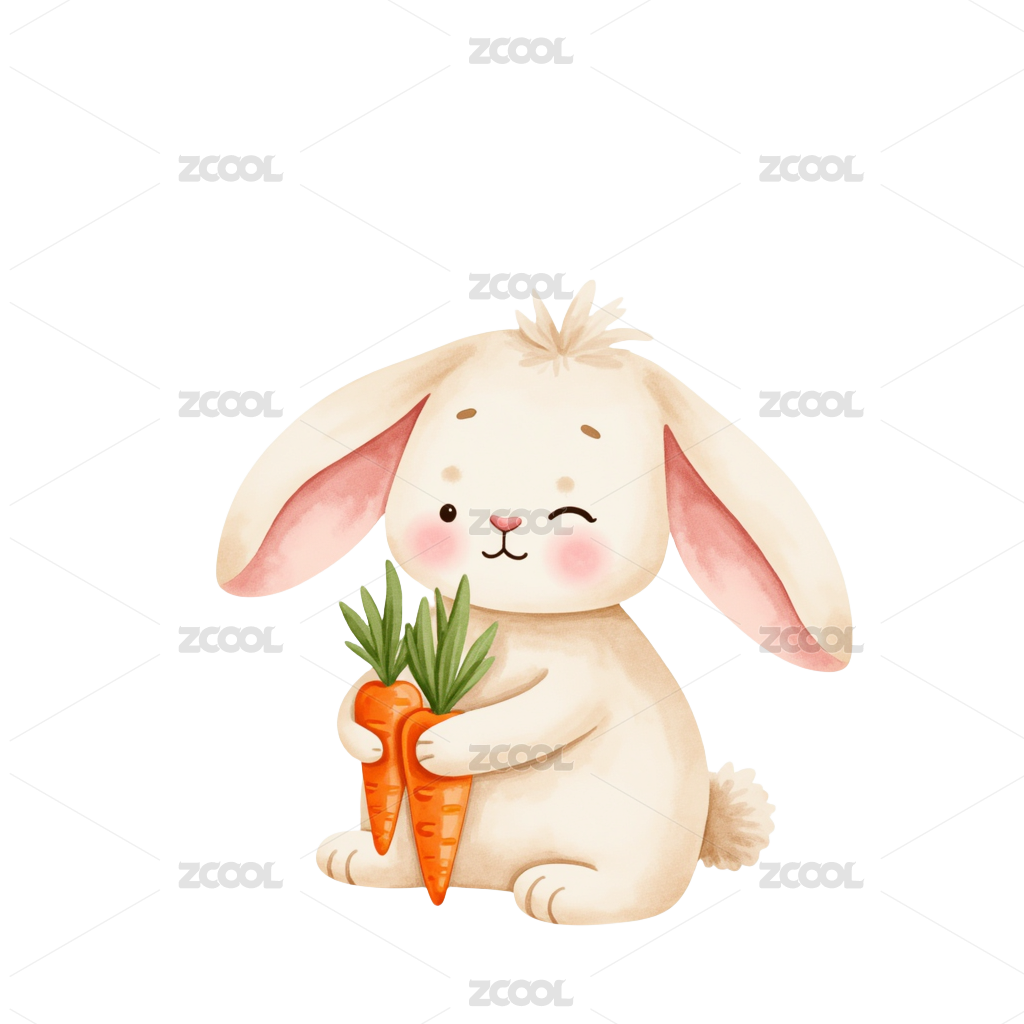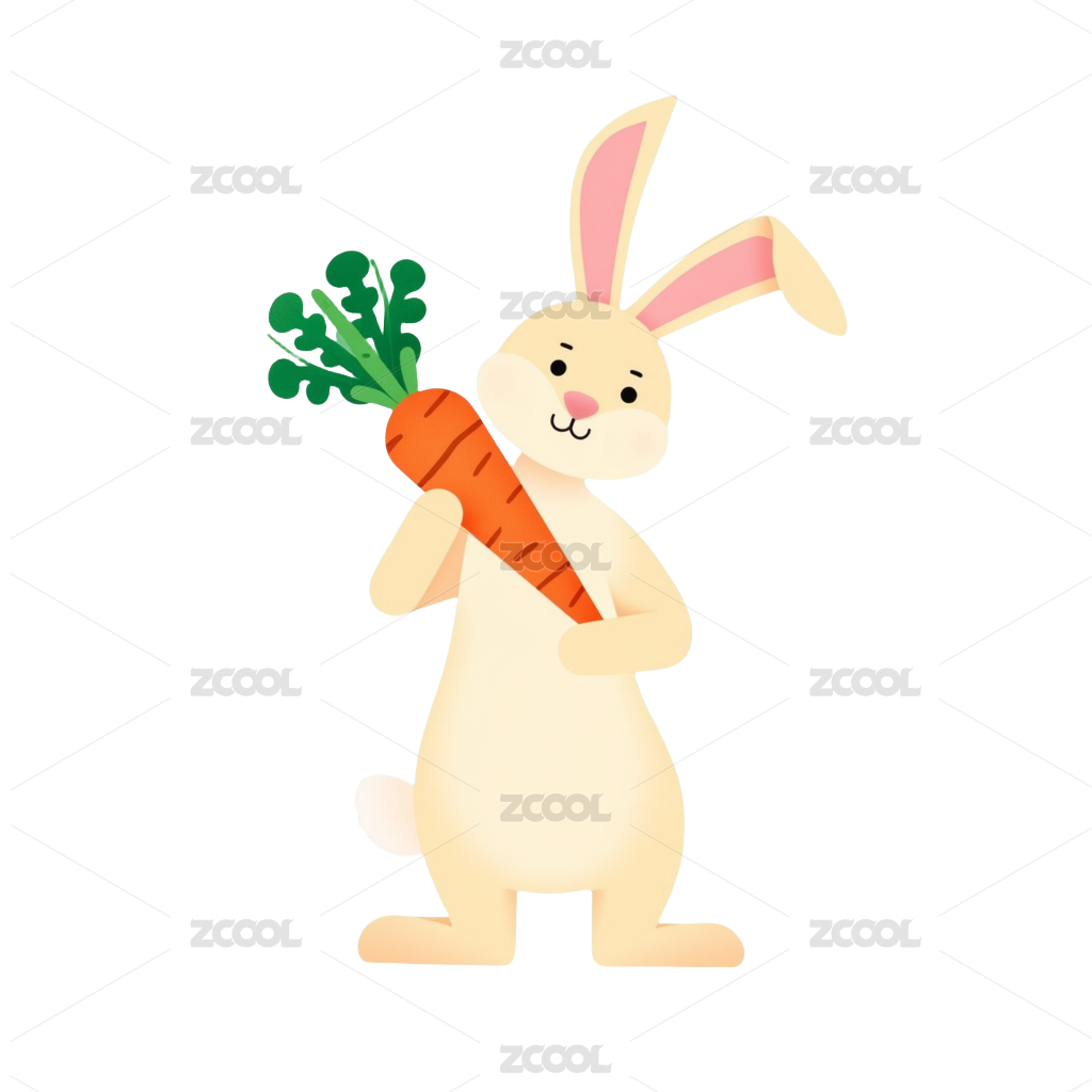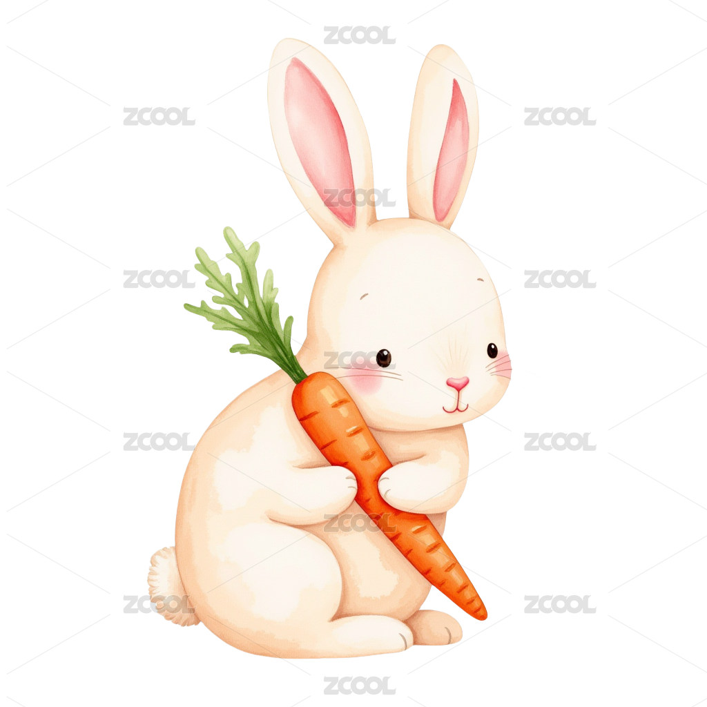 抱着胡萝卜的可爱卡通小粉兔