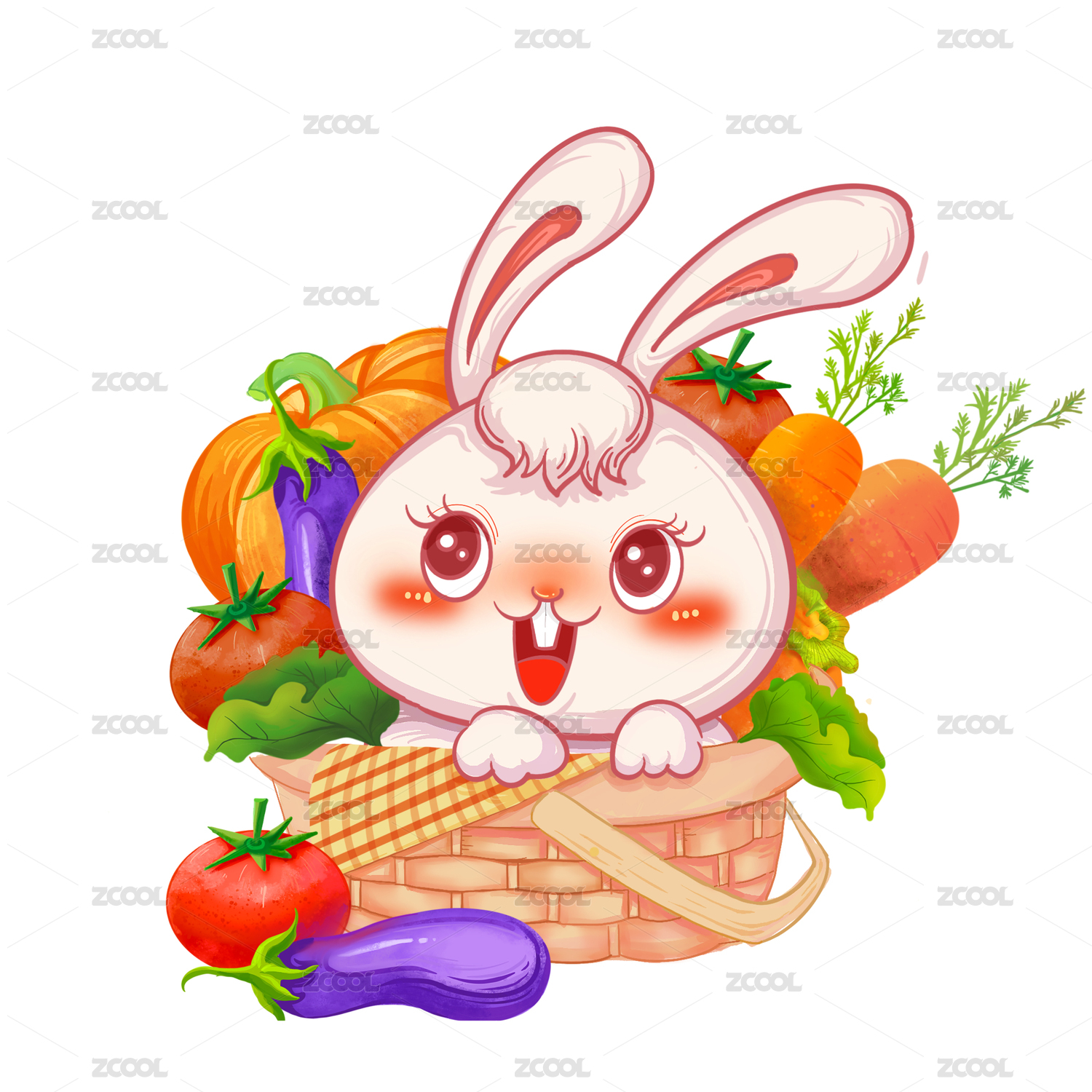 手绘小兔子篮子蔬果大丰收