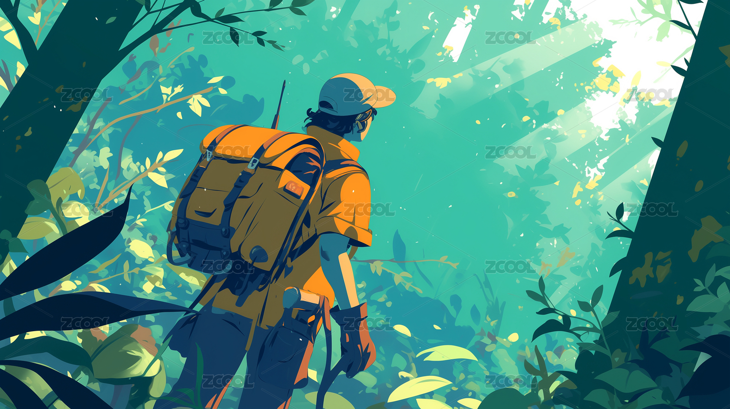 扁平绘卡通徒步人物元素