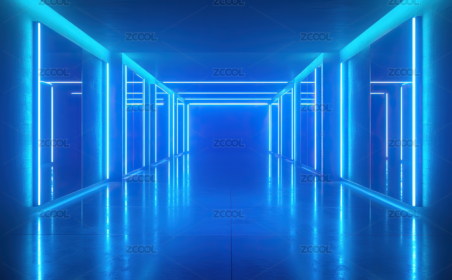 三维,3D,走廊,空间,灯光,氛围,科技,抽象,AI,数字艺术