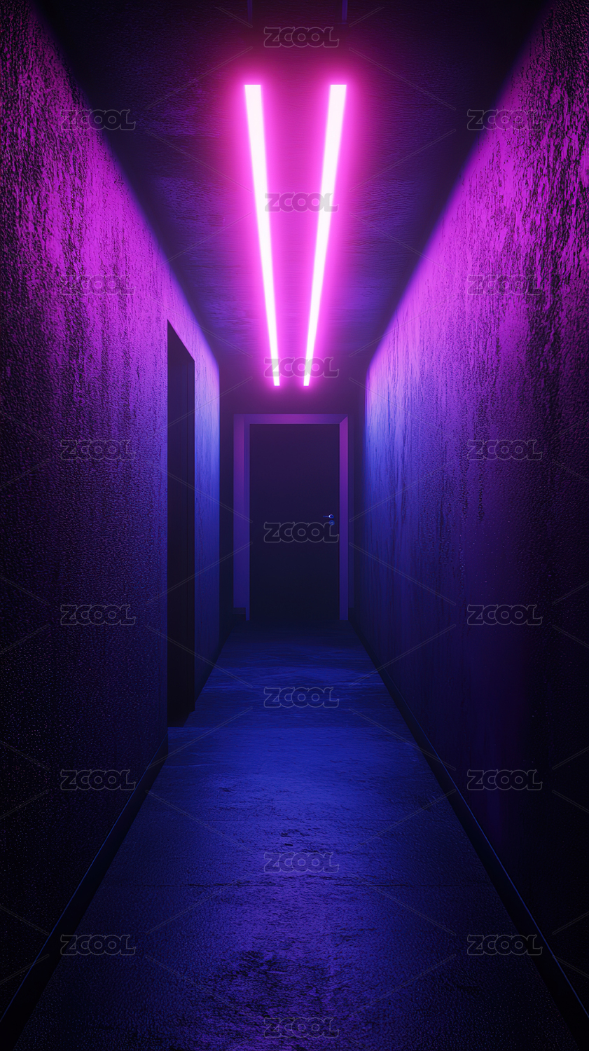 霓虹灯走廊梦幻紫色空间