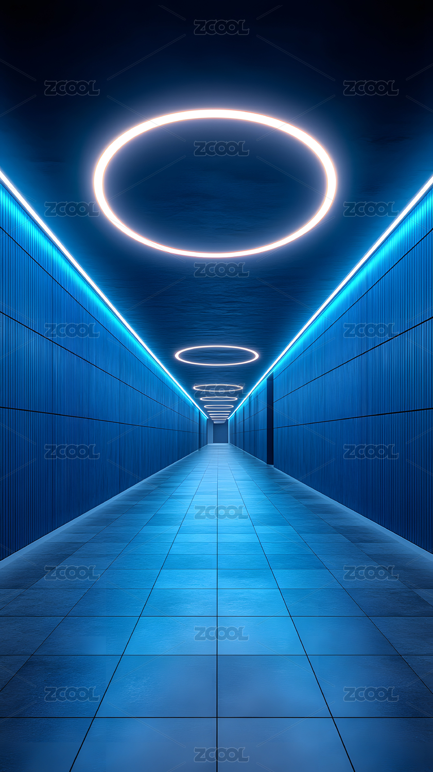 蓝色科幻走廊灯光环形设计