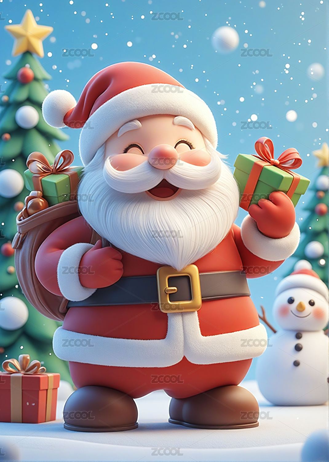 圣诞节,圣诞老人,3d效果,可爱的,笑眯眯的,礼品,冬季,冬天,下雪,喜庆的