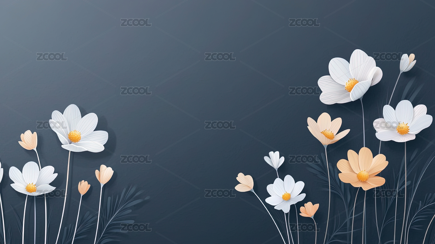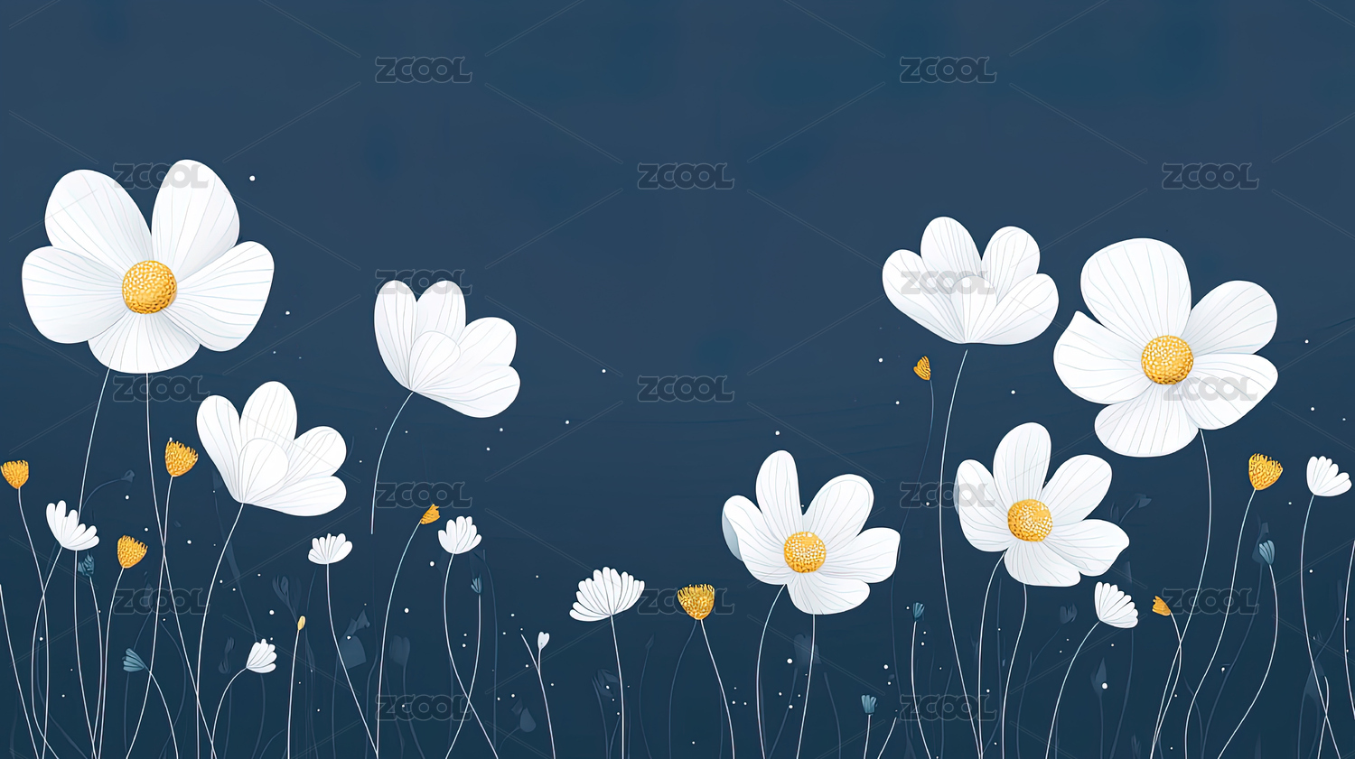 深蓝色背景上的白色花朵