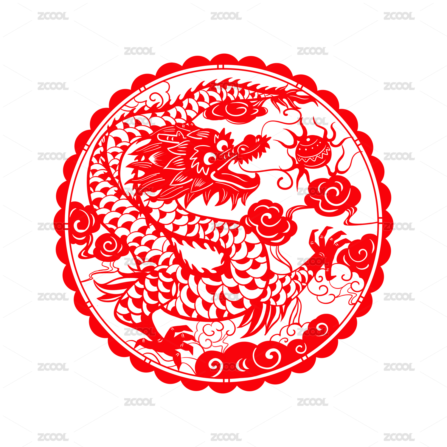 龙年春节十二生肖红色圆形剪纸元素