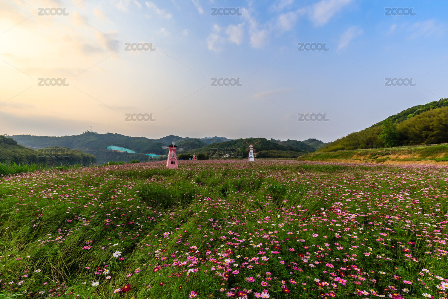 重庆巴南花木世界园林满山盛开格桑花中的风